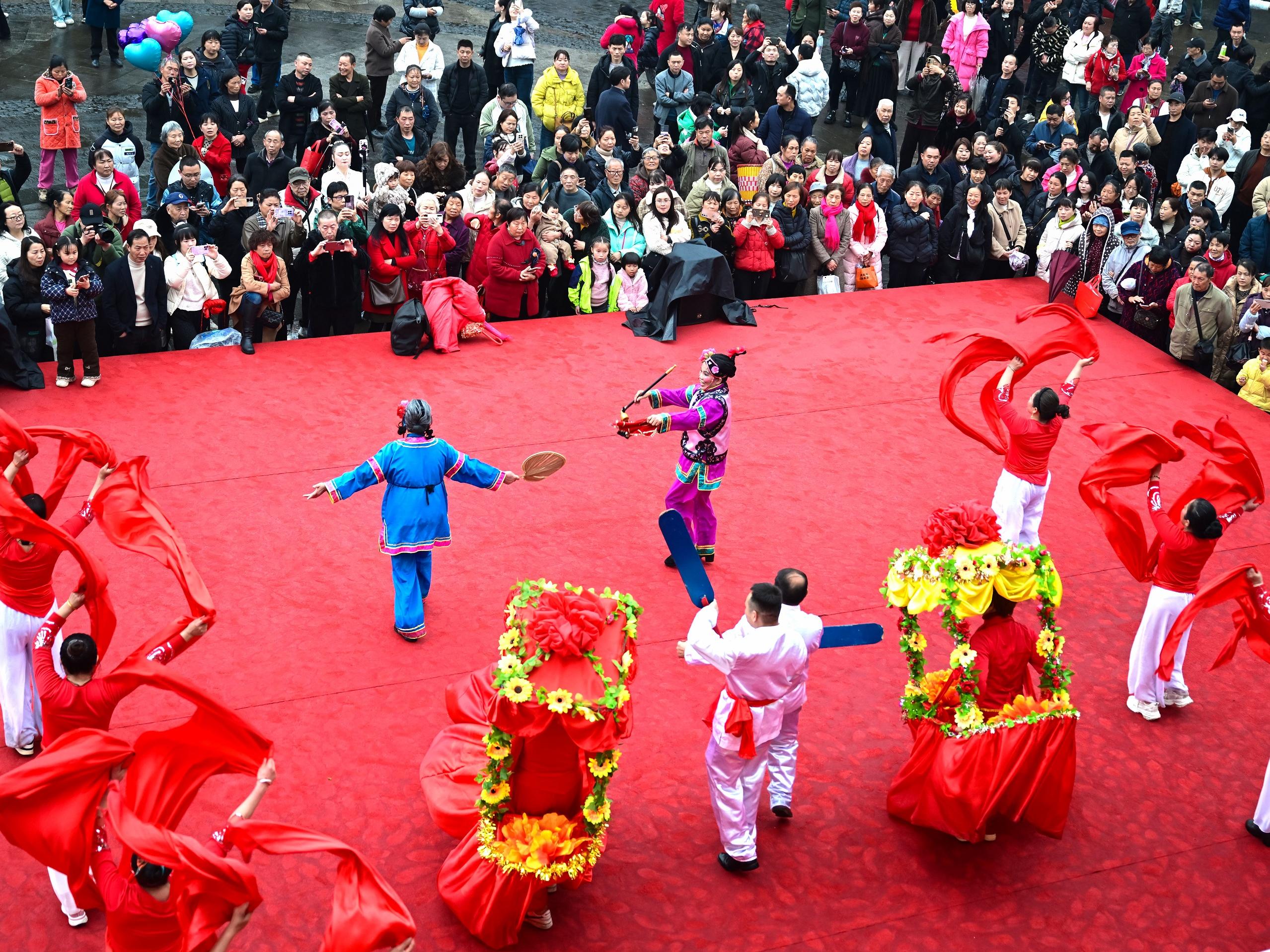 网络中国节·元宵|伞里古街闹元宵,百米长桌品年味
