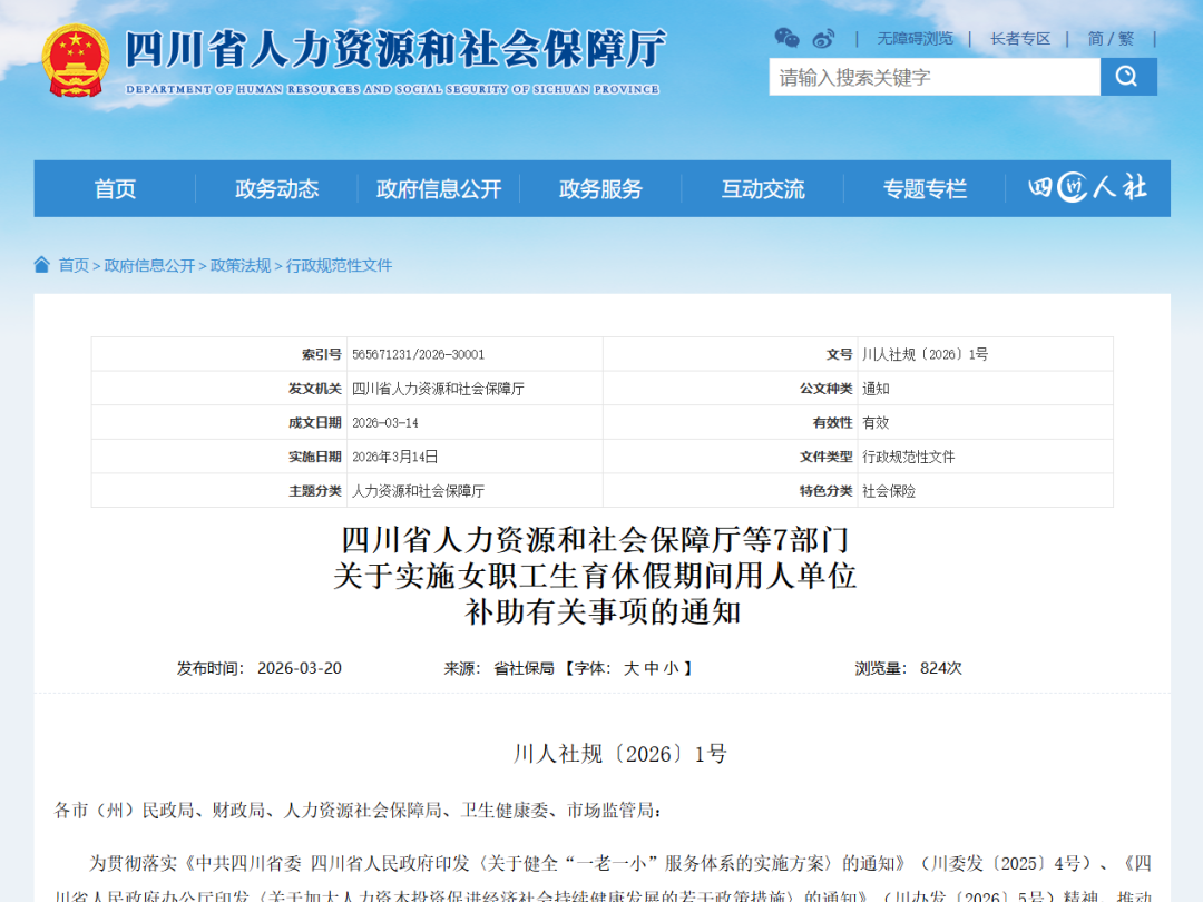 事关女职工生育休假补助,四川正式发文
