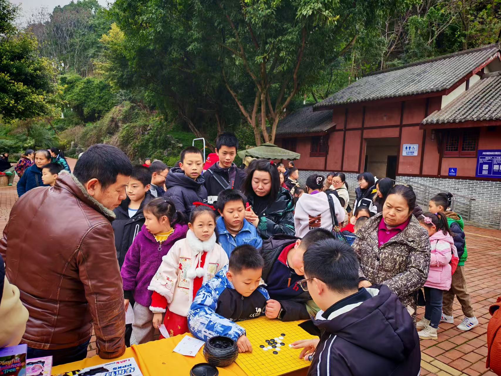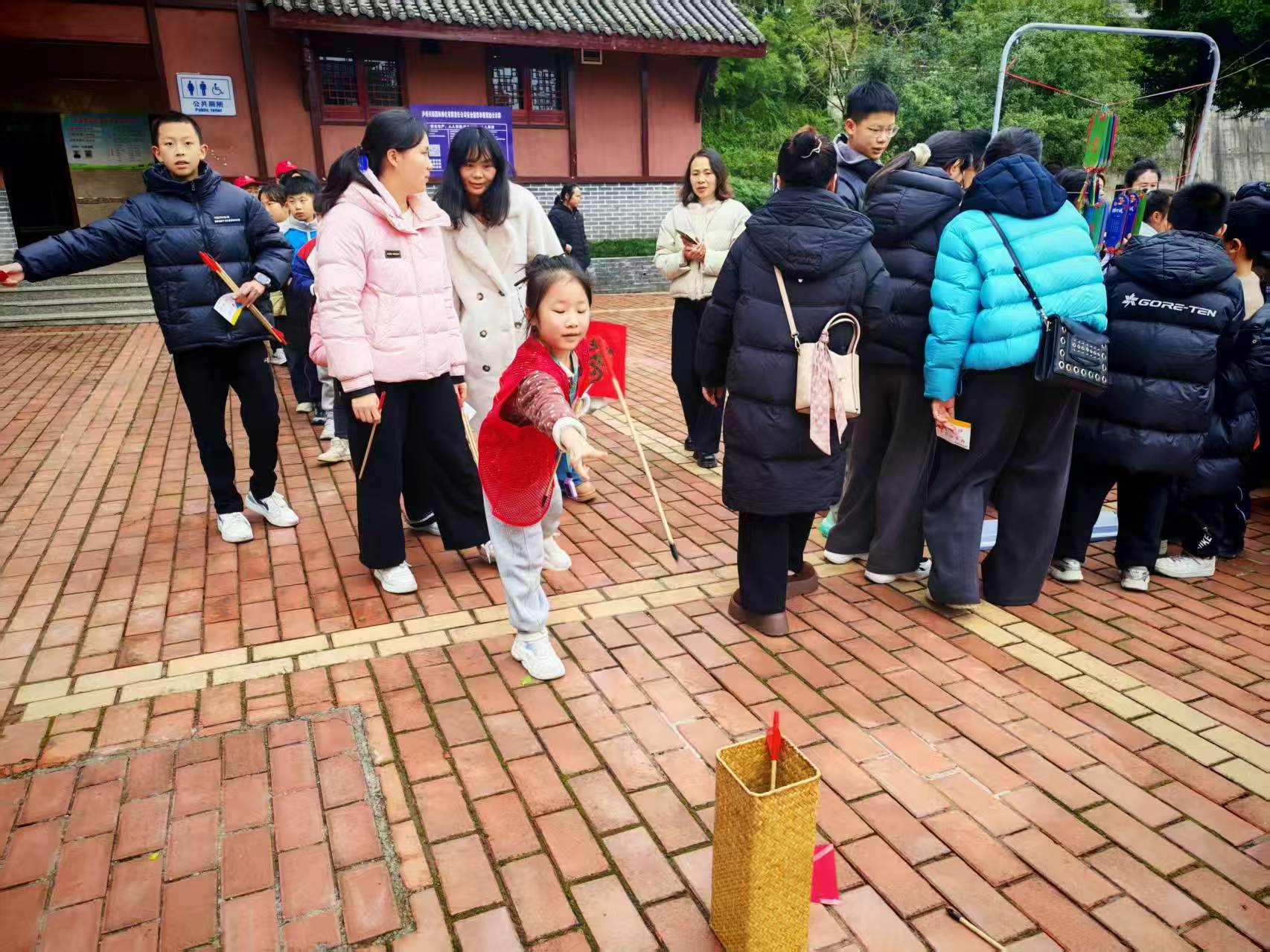 活动现场气氛热烈,欢声不断。孩子们在志愿者和老师的引导下,兴致勃勃地穿梭于各个游戏区域:投壶雅趣,一试身手,感受古人礼仪游戏的魅力;五子棋PK,屏息凝神,方寸棋盘上展开智力较量;套圈游戏活力满满,瞄准掷出,收获的是惊喜与喝彩;猜字谜环节更添智慧乐趣,一句句巧妙谜面引发阵阵讨论与欢笑。