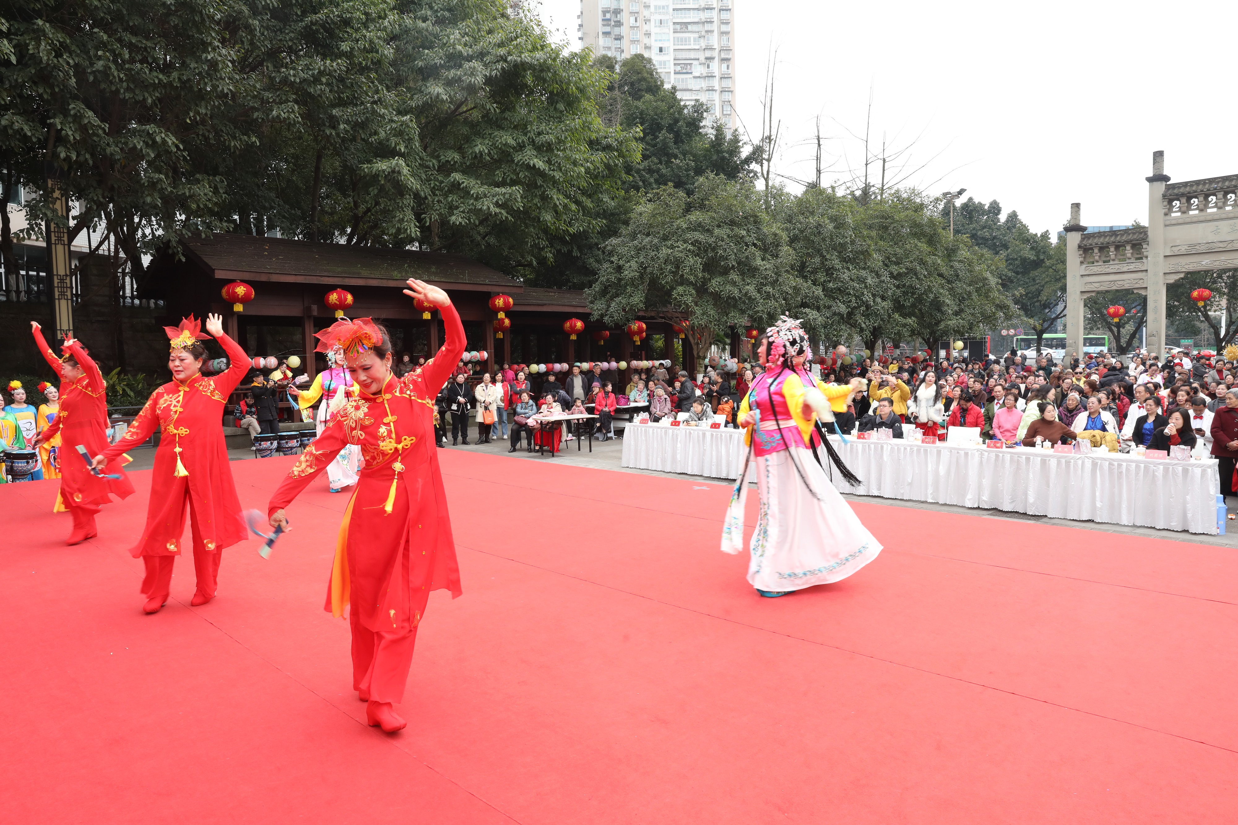 江潮讯(记者 袁玉华)锣鼓喧天辞旧岁,张灯结彩迎新春。2月5日下午,龙透关公园暖意融融、热闹非凡,江阳区大山坪街道龙透关社区“春风共聚龙透关 民族同歌吉祥年”2026年迎新春文化盛典热闹开演。文艺汇演、春联送福、灯谜、指尖上的手工体验、抽奖等活动精彩纷呈,为辖区群众与游客献上一场集观赏性、互动性、趣味性于一体的新春文化盛宴。