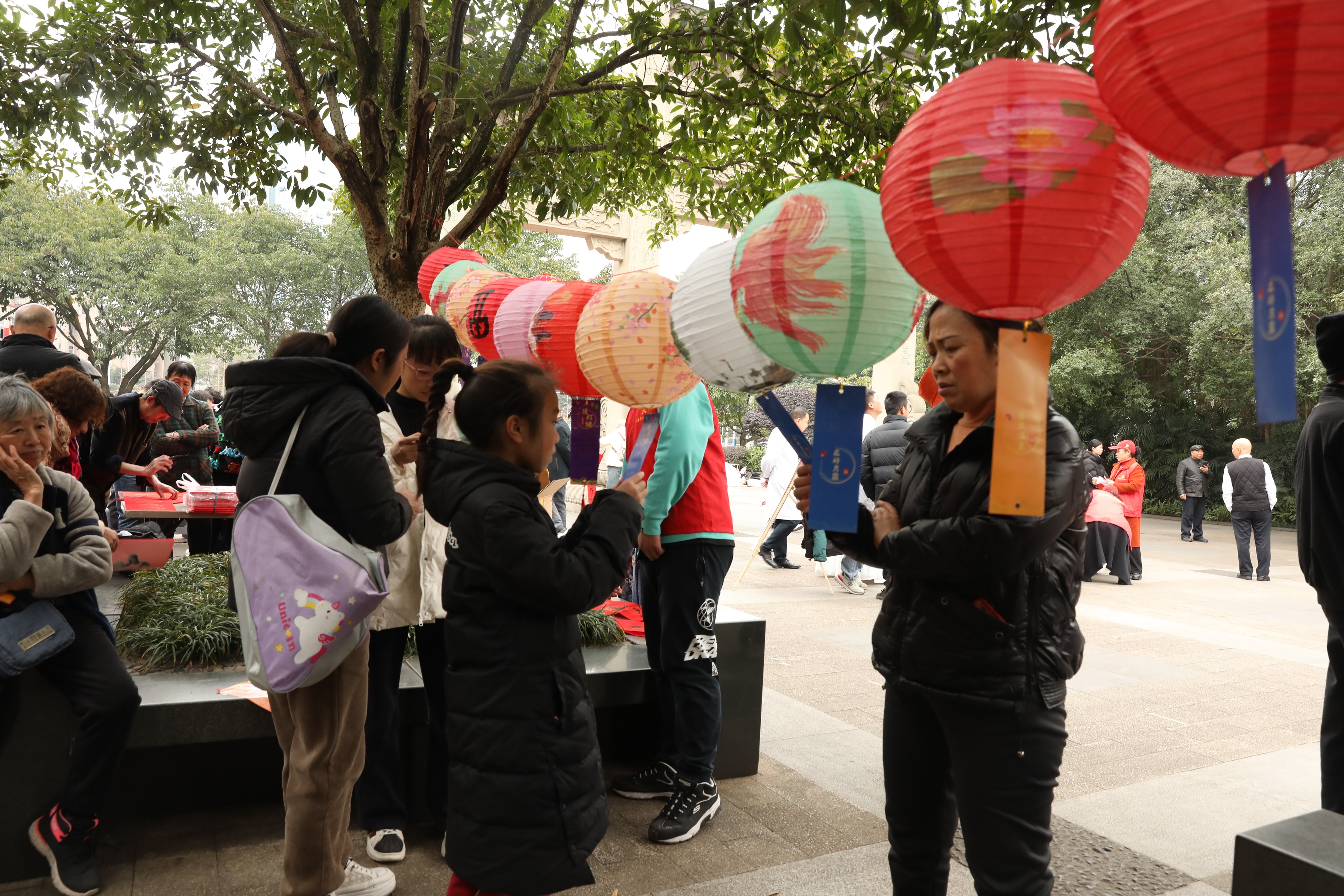 200余个灯笼悬挂在猜灯谜活动区,灯笼下分别挂着提前编好号的猜灯谜题卡。居民和游客纷纷挑选自己感兴趣的题目进行挑战。“空中排队飞,组织纪律好,初春到北方,深秋往南跑。打一鸟类!”“这个我晓得,是大雁!”一个大约10岁的小男孩指着一个灯谜题卡高兴地向妈妈“炫耀”。