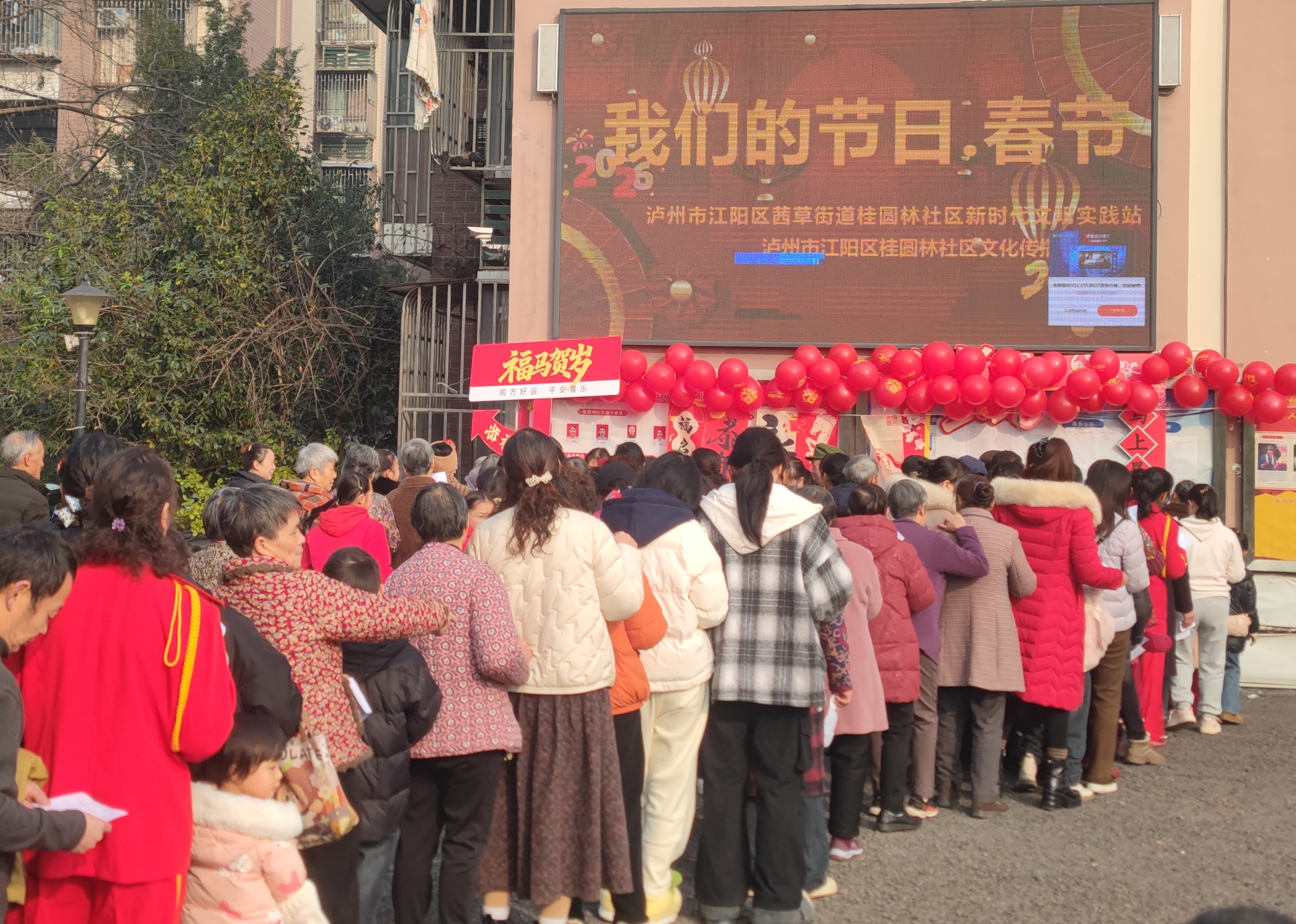 新春将至,年味渐浓。为弘扬中华优秀传统文化,营造喜庆祥和、邻里和睦的节日氛围,2026年2月6日上午9时30分,桂圆林社区在社区院坝热闹开展“我们的节日·春节”主题活动。辖区居民欢聚一堂,赏文艺、玩民俗、赢好礼,在欢声笑语中提前共度温馨新春。