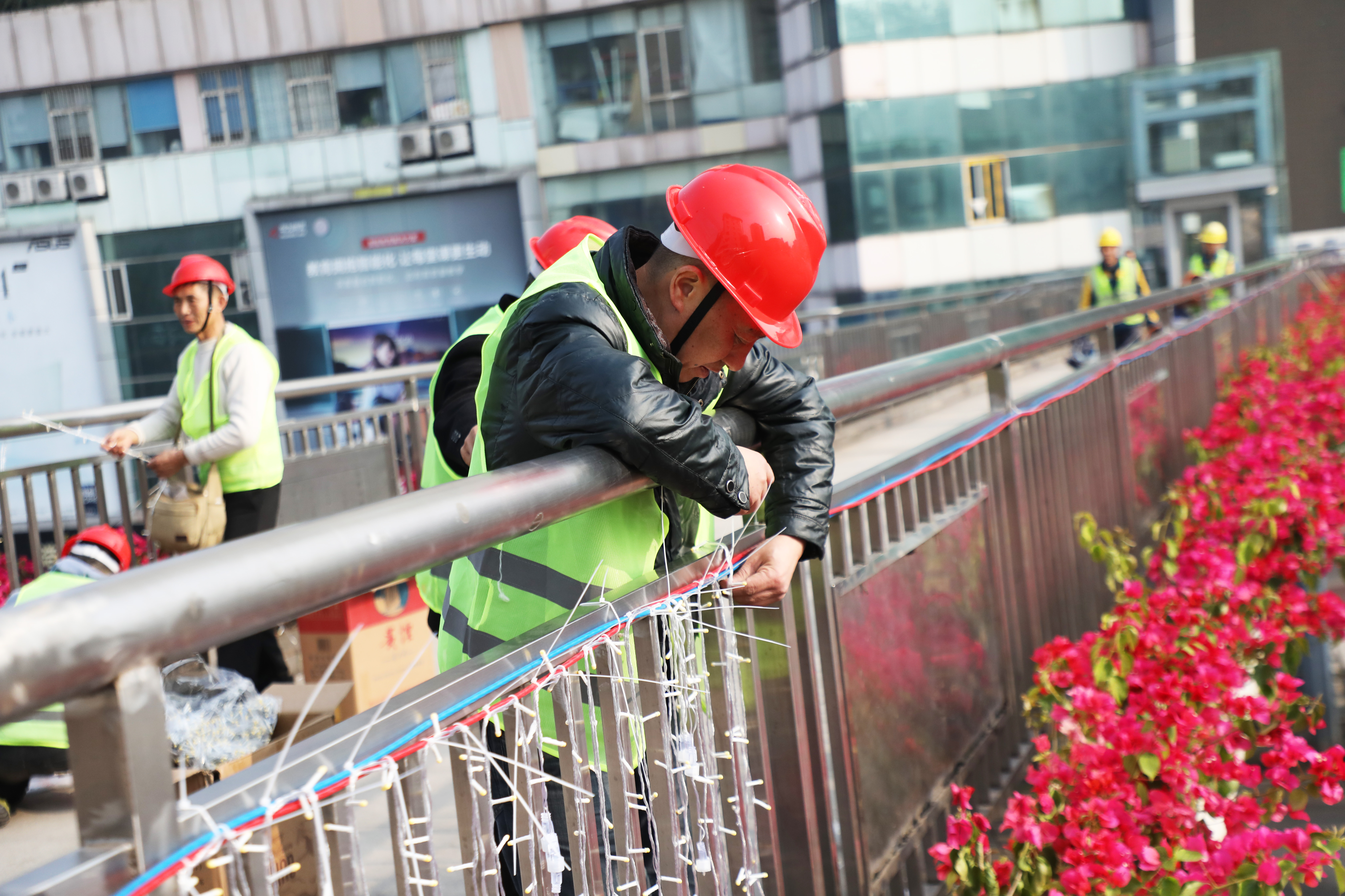 江潮讯(记者 张红)整理灯带、固定栓绳、铺设电源……2月6日清晨,江阳区时代商都天桥上,安装工人们正有序进行LED灯带的安装和调试。自2月5日起,江阳区2026年城区春节氛围营造项目全面启动,各类灯饰景观进入紧锣密鼓的布置阶段。今年,江阳区以“泸州年•醉幸福”为主题,通过一系列光影装饰,将浓浓年味送到市民身边。