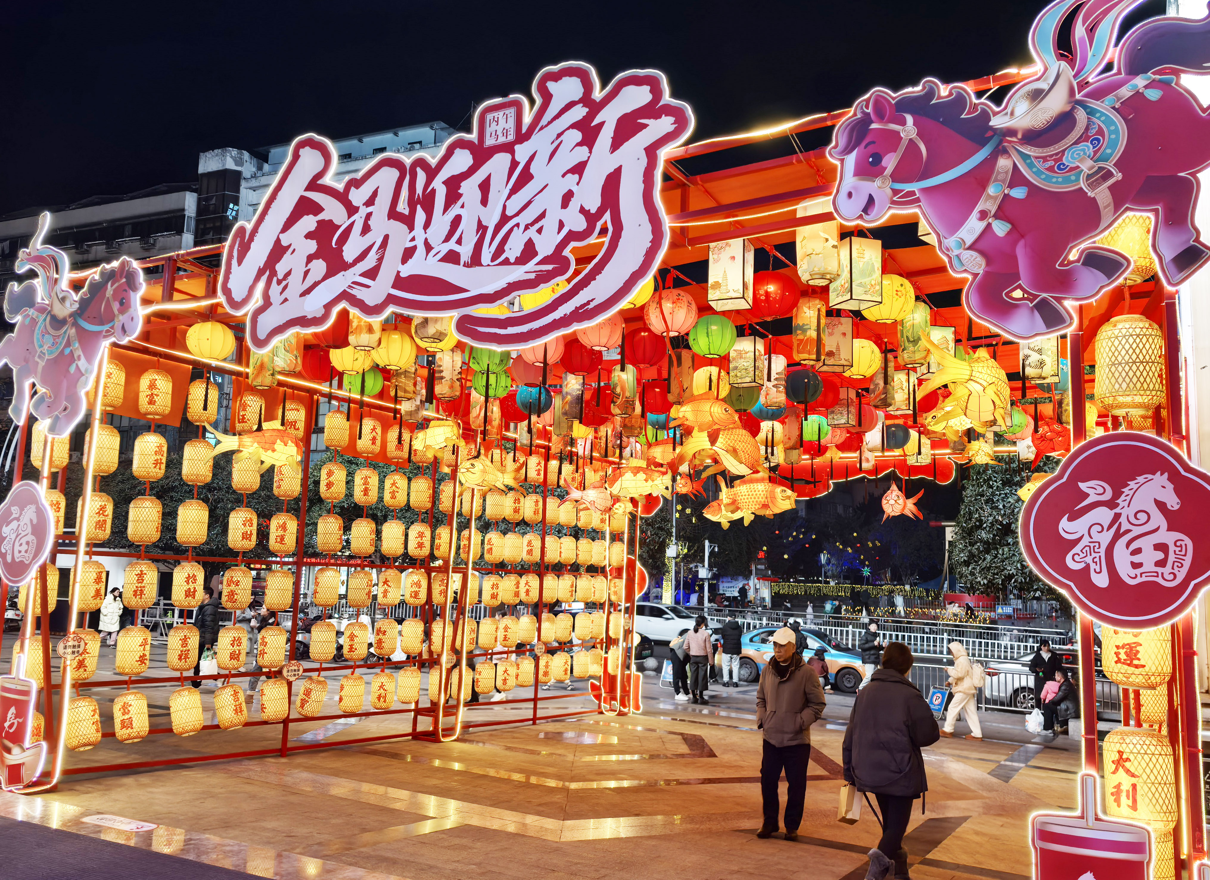 泸州万象汇打造“南北年俗大会”,既有策马寻春主题美陈,也有南北民乐、古彩戏法表演,并免费派发万份马年开运礼。
