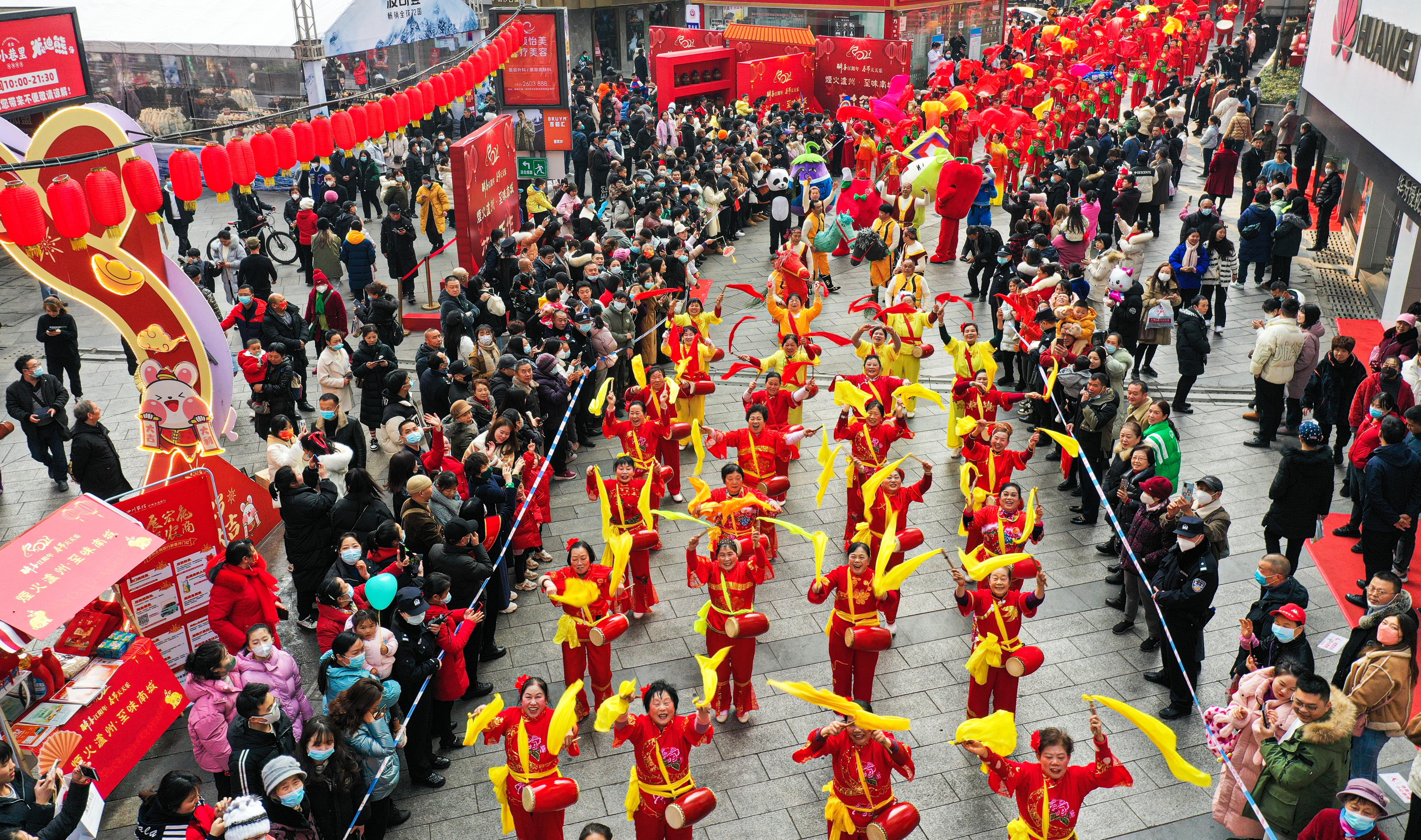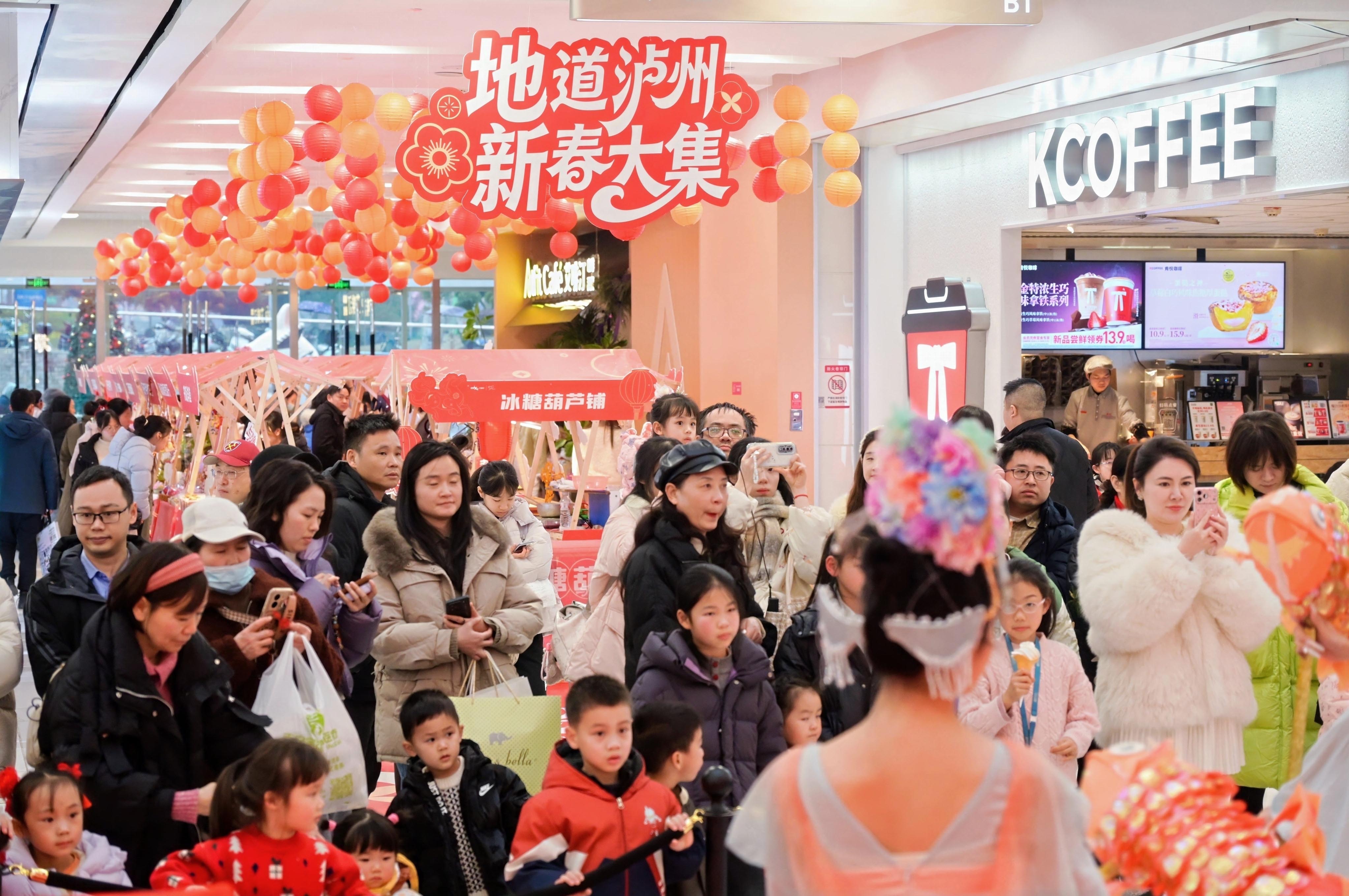 重百泸州商场上演“开年大戏 宫迎新春”,潮汕英歌舞、醒狮表演振奋开场,下水井沟非遗集市每日开放。