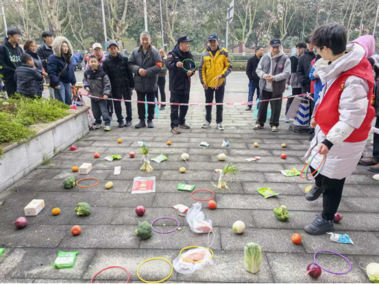 活动现场划分趣味活动区、爱心便民服务区两大核心区域,各区域人气满满、热闹非凡,处处洋溢着喜庆的节日氛围。趣味活动区内,欢乐套圈成为一大亮点,游戏前排起了长队,居民们手持套圈,瞄准目标、抬手投掷,现场喝彩声、欢笑声此起彼伏,小小的套圈拉近了邻里距离,让大家在趣味游戏中感受团圆的快乐。