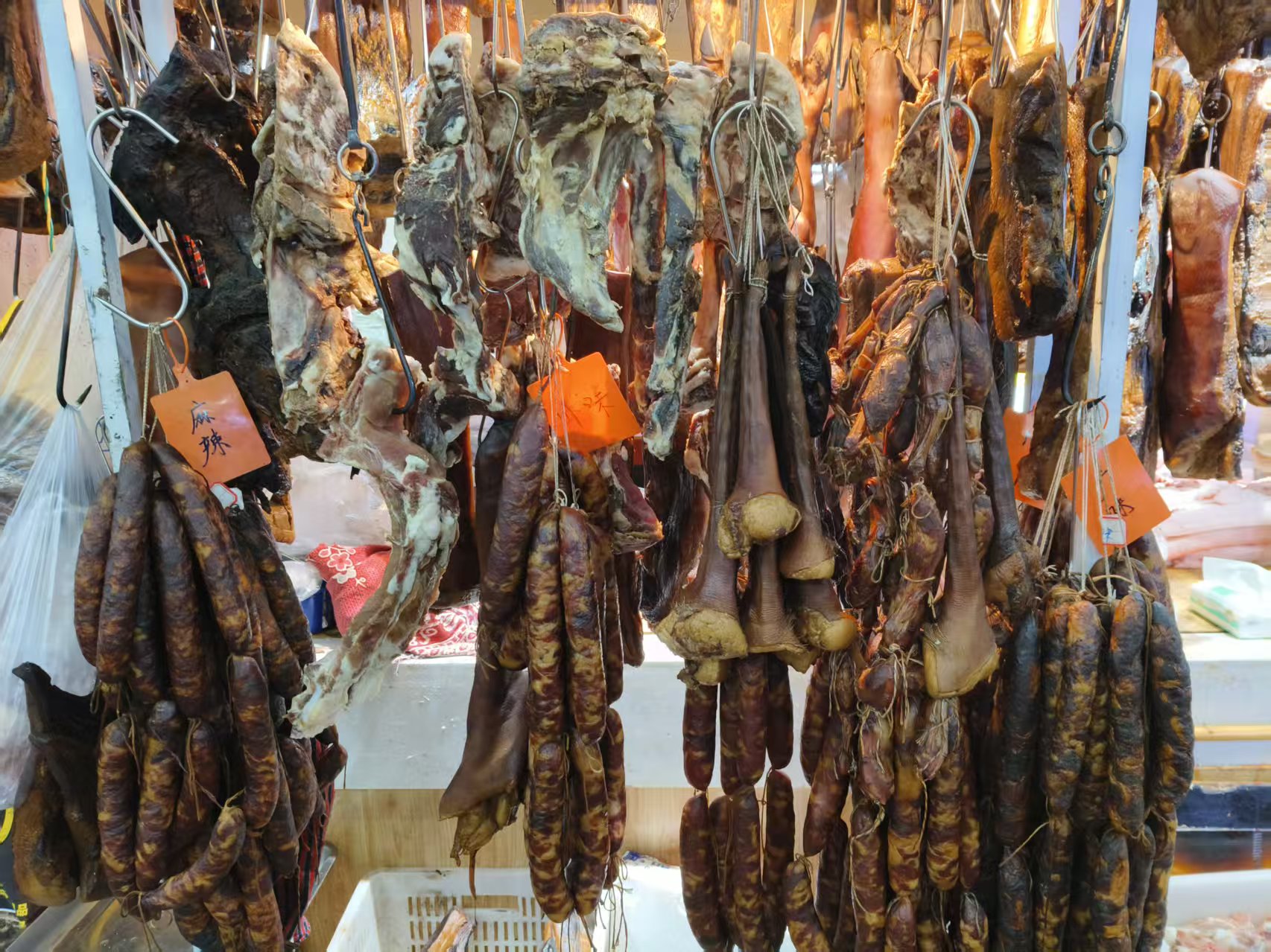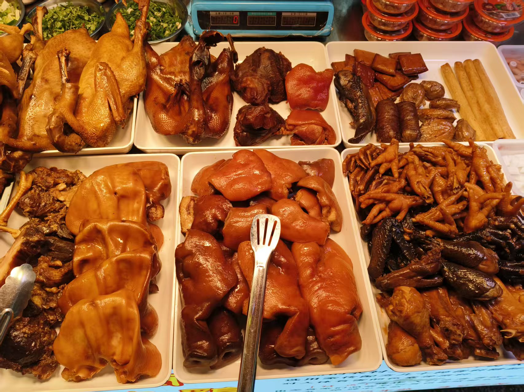 走进兴南市集农贸市场,浓郁的烟火气扑面而来。市场整体环境整洁明亮、经营分区清晰有序。时令蔬菜区里,白菜、萝卜、菠菜等鲜蔬青翠欲滴;肉品区的猪肉、牛肉分割整齐、色泽鲜亮,摊主们忙碌着为顾客称重打包、热情服务;水产区的鱼虾鲜活饱满、活蹦乱跳,各类生鲜食材琳琅满目、一应俱全;卤菜区更是香气四溢,卤耳片、卤鸡爪、卤豆干等各式卤味整齐码放,醇厚的卤香沁人心脾,引得市民驻足选购,市场内一派红火热闹的节日采购景象。