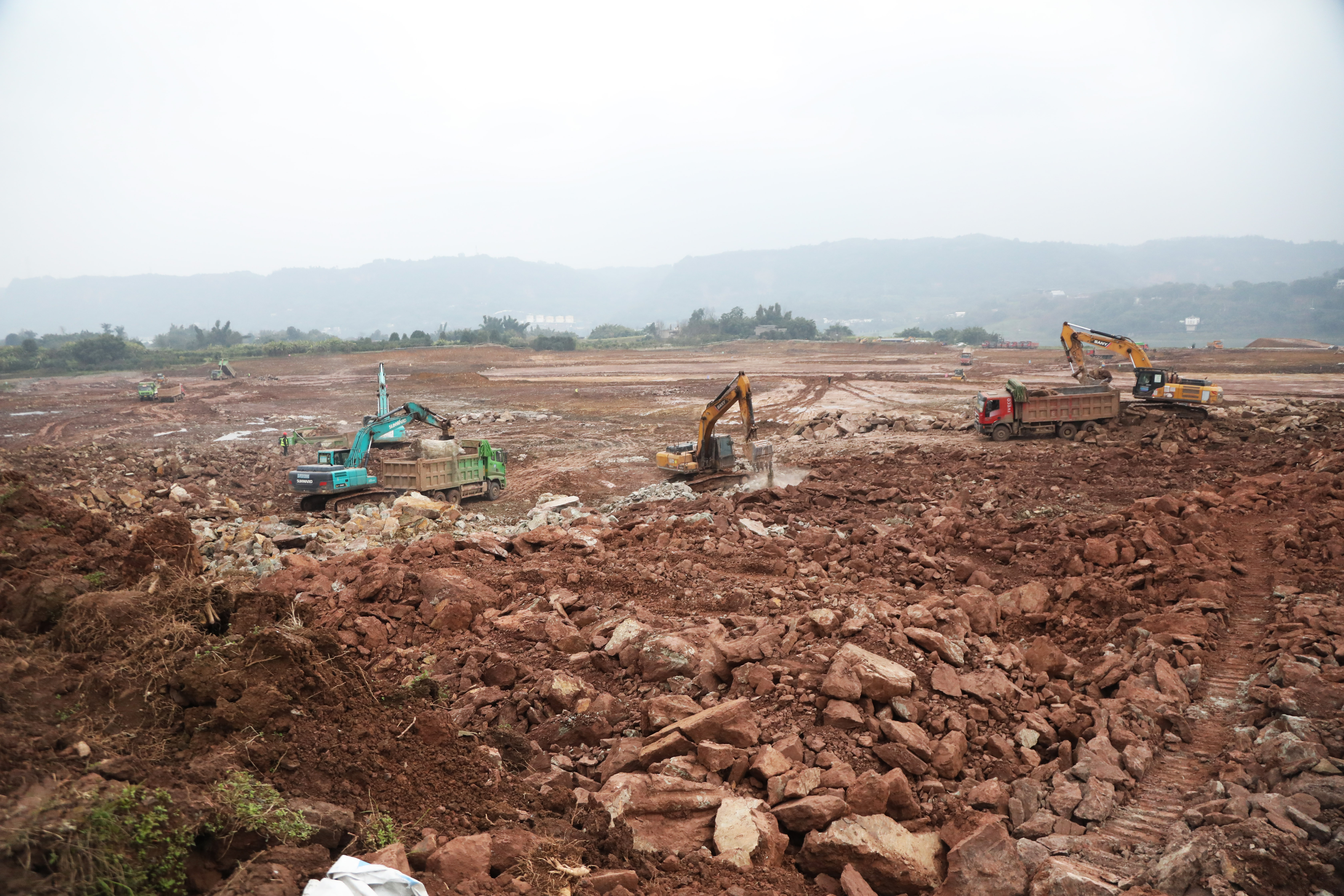 江北港暨重装产业园项目位于江阳区江北镇长江北岸,与纳溪区大渡口镇隔江相望。总规划占地约15平方公里,计划总投资约106亿元,分功能区分期实施,涵盖大脚石作业区和赵坝作业区、重装产业园区、进港铁路等。其中,大脚石作业区一期工程占地398亩,计划投资超11亿元,于去年7月1日启动,正在实施建设,目前已完成场平土石方总量的60%。