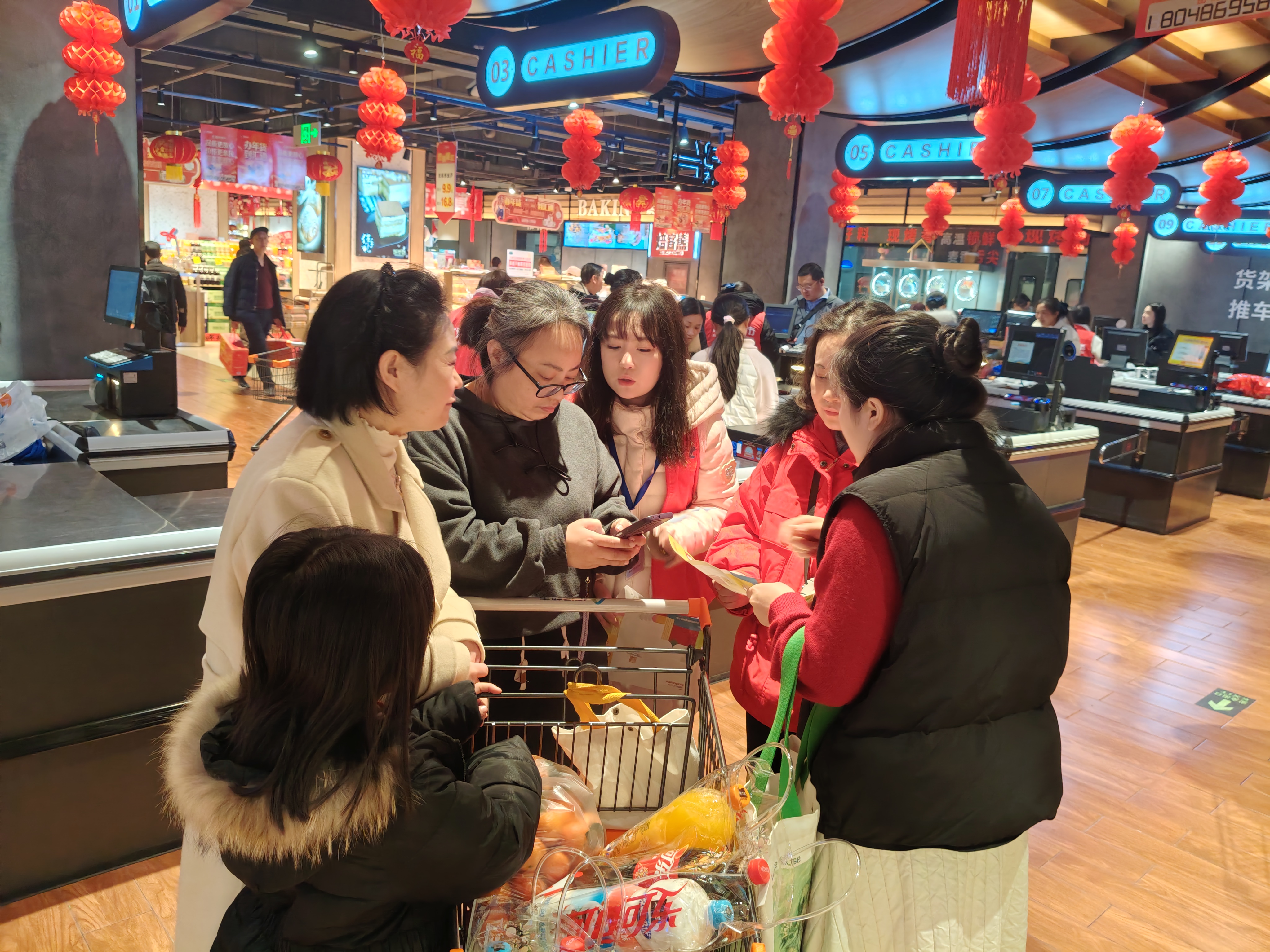 “请您扫收银小票上的二维码自主开具发票,通过‘酒城e通’、云闪付、支付宝平台上传发票就能参与抽奖,说不定能喜提意外惊喜!”在西城御景小区旁的汇通超市,华阳街道的工作人员正手把手指导刚采购完年货的居民进行操作,在一旁的超市导购员笑着补充:“现在好多顾客都主动咨询如何开票,有的顾客中了奖还会回来再消费,超市每天的人流量更多了。”