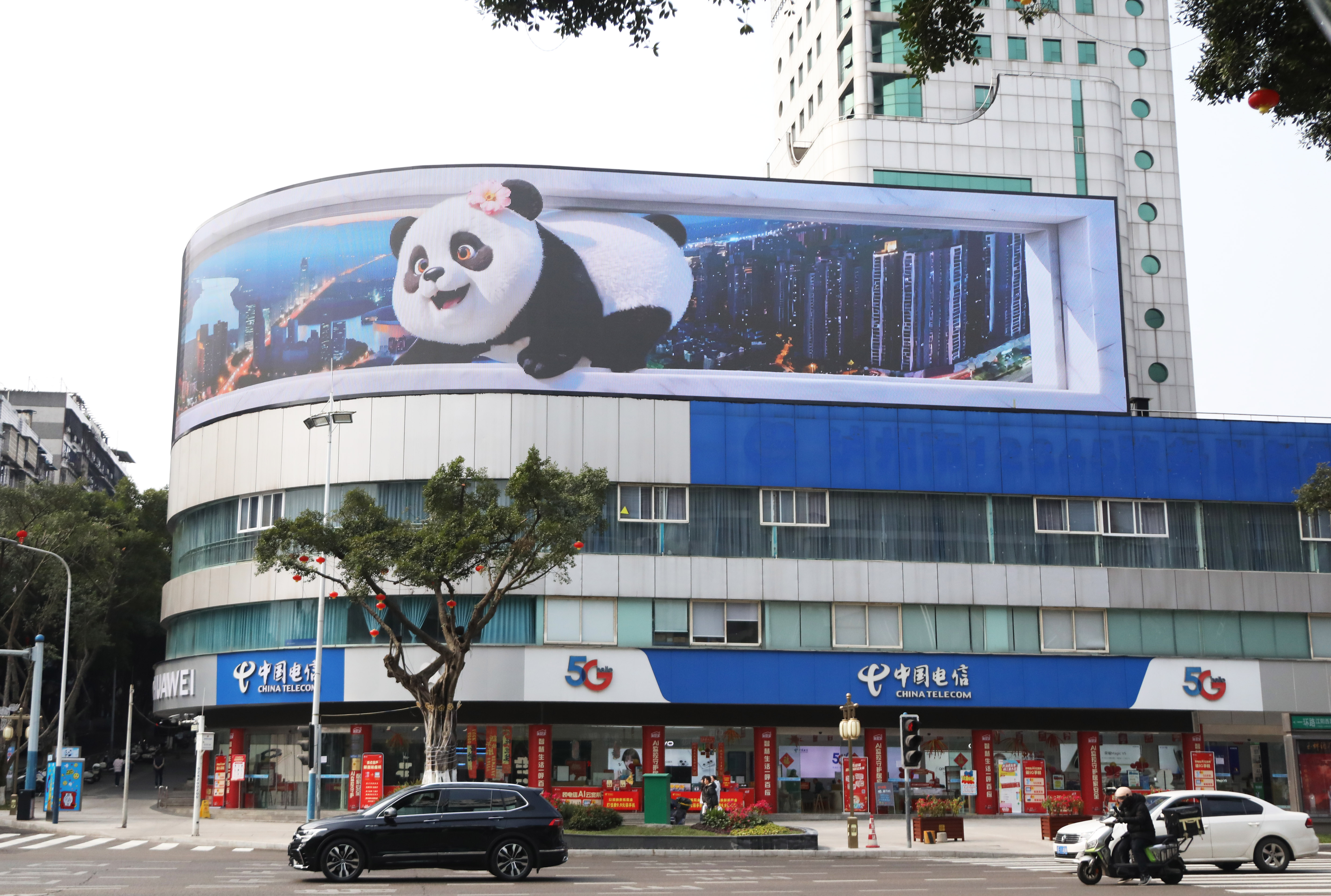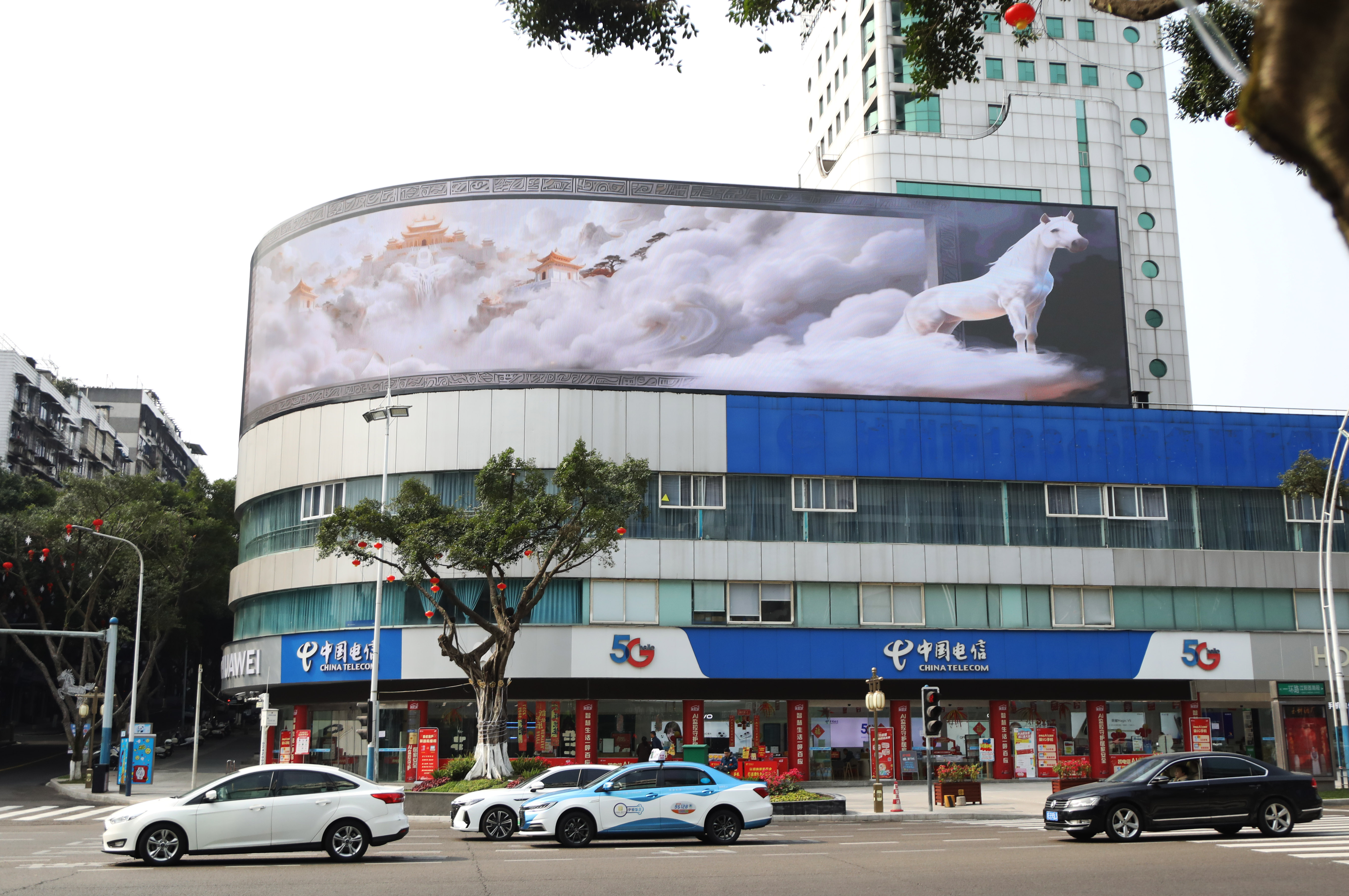江潮讯 (记者 张红)“熊猫要‘越狱’啦!”“这马就像从我头顶飞过去一样!”2月16日,在江阳区刺园路口的电信大楼外,一块全新的裸眼3D大屏成了市民争相打卡的网红地标。不少路人驻足仰望,举起手机记录下骏马奔腾、熊猫撒娇的震撼画面。