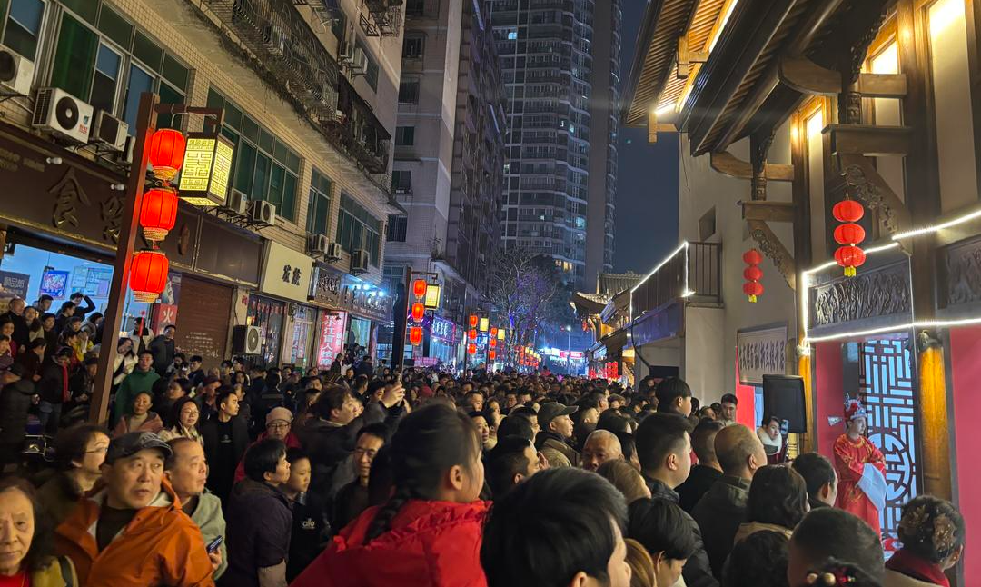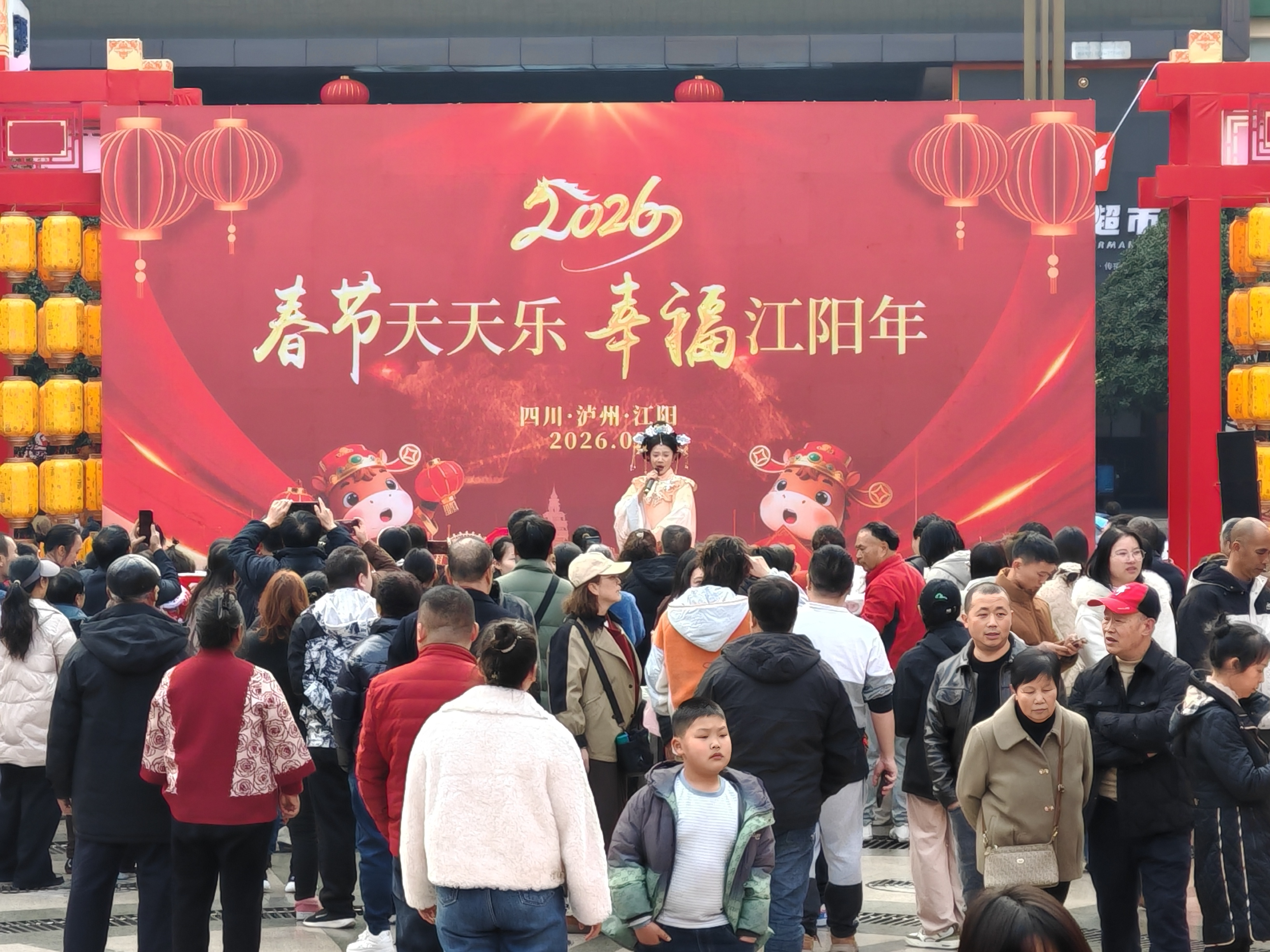 江潮讯(记者 袁玉华)金蛇辞旧岁,骏马踏春来。2月17日,正月初一,初春的阳光暖意融融,老泸州·大河街、报恩塔广场、钟鼓楼•江阳里等地热闹非凡,2026“春节天天乐 幸福江阳年”系列文旅活动全面铺开,5万市民和游客欢聚一起,看演出、逛集市、参与游园活动等,一同感受浓浓的年味儿。