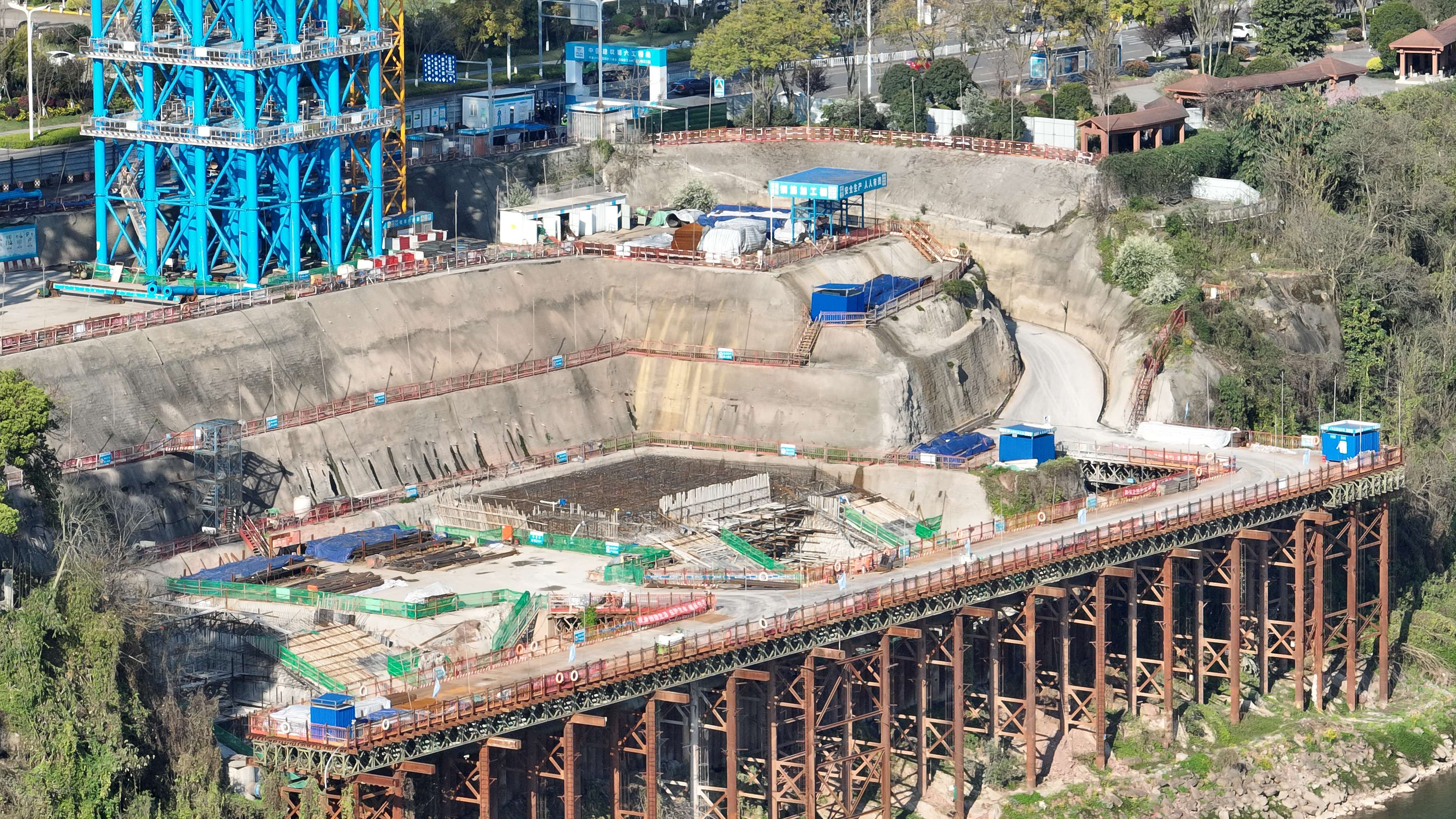 记者看到,建设工地上车辆来回穿梭,工人忙碌在各自的岗位上,有条不紊地开展工作。目前南岸拱座基础的混凝土浇筑正在进行,同步对缆塔进行施工。据项目负责人介绍,缆塔预计在4月底封顶。封顶之后还将进行缆索吊机安装工作,工期预计在3个月左右。