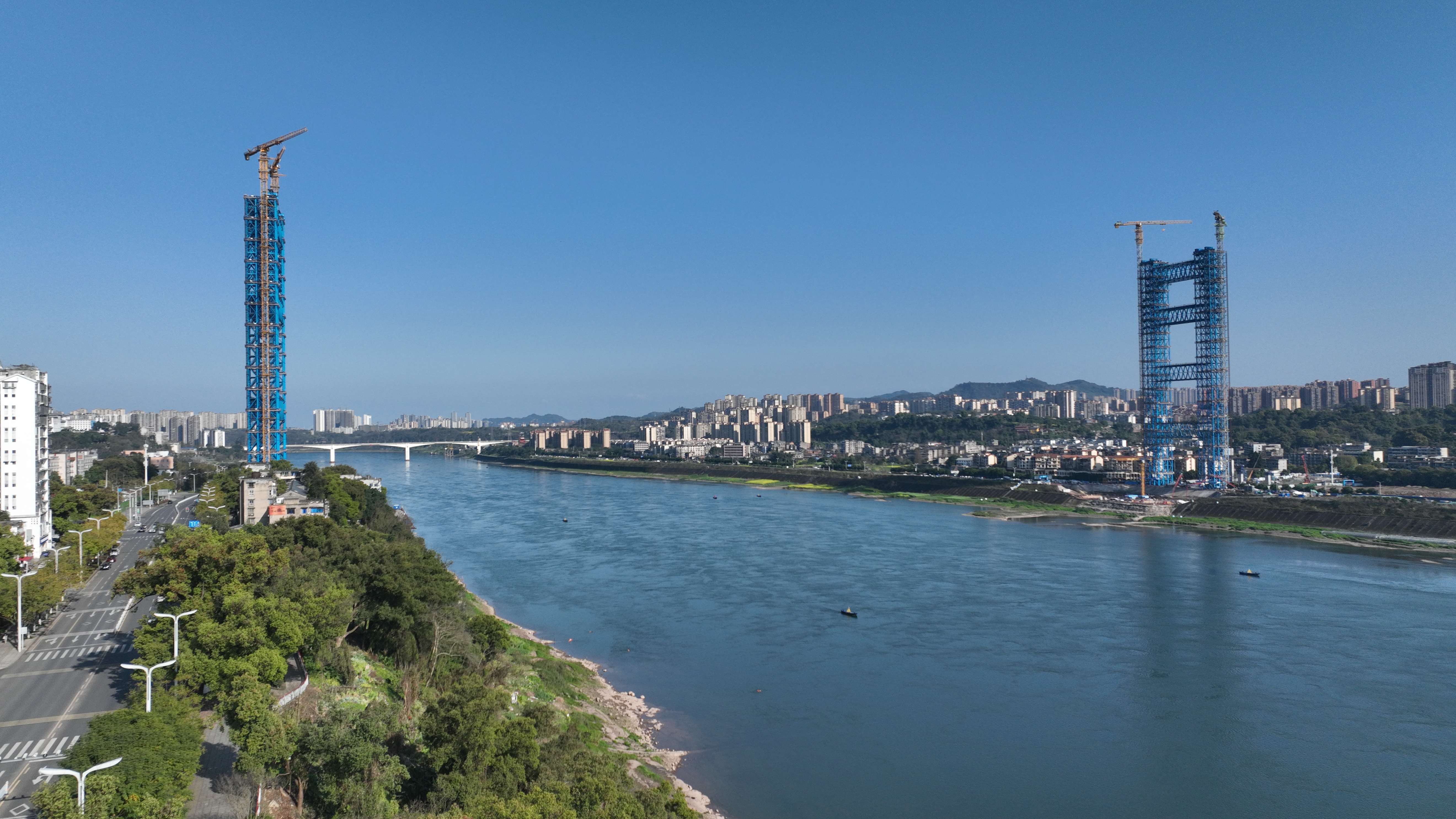 江潮讯(记者 何卓恒)泸州长江五桥及连接线工程是完善主城区骨架路网的重要项目之一。近日,记者在工程现场了解到,项目目前正进行南北岸拱座和扣塔施工,整体建设正有序推进。