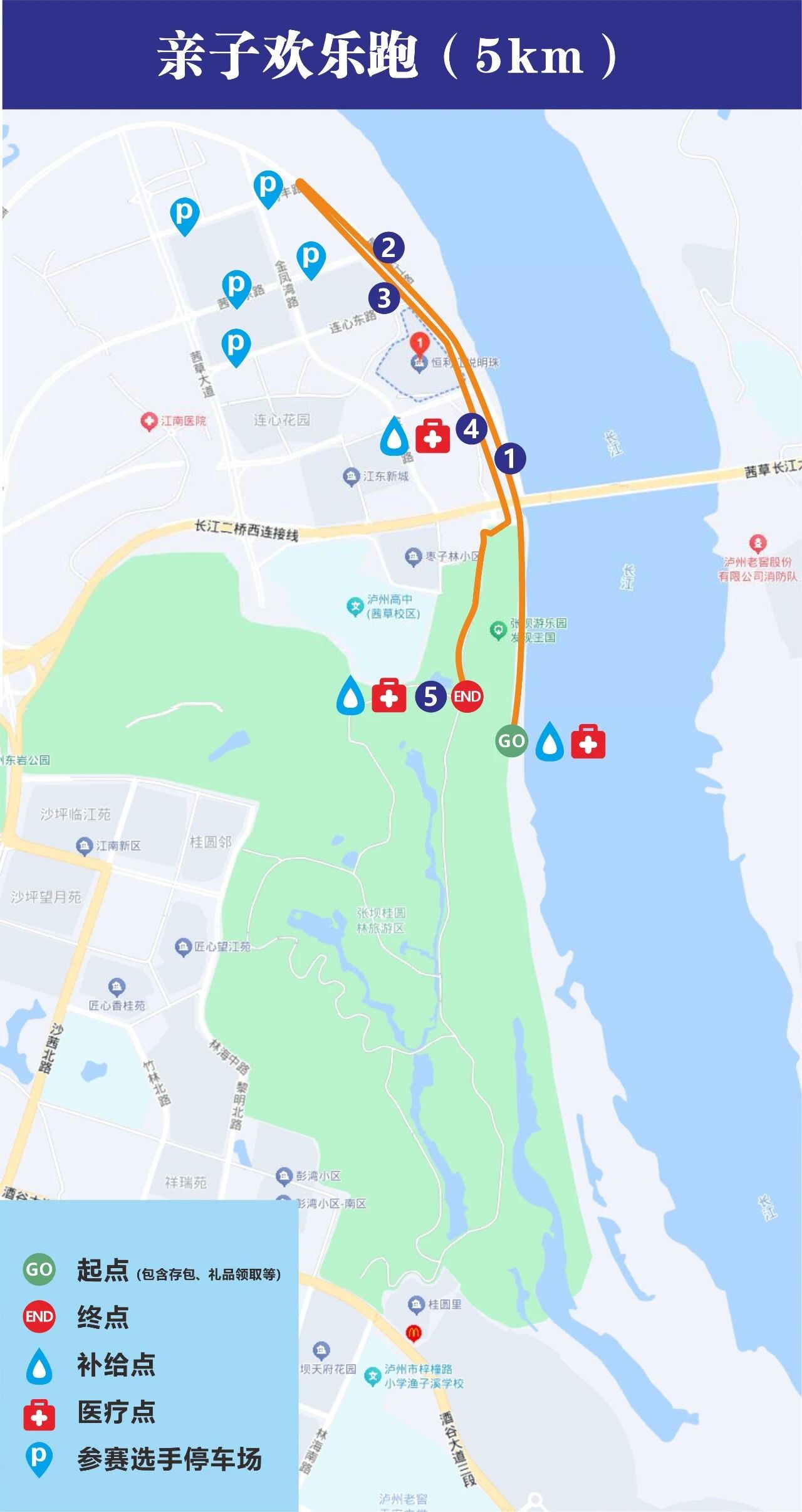 本次健康跑设10公里城市健康跑和5公里亲子欢乐跑两个项目,均以张坝滨江路东门足球场为起点。赛道沿江伸展,蜿蜒穿行于滨江景观道与百年桂圆林间,10公里赛道设5个补给点、5个医疗点,5公里赛道设3个补给点、3个医疗点,为跑者全程护航。