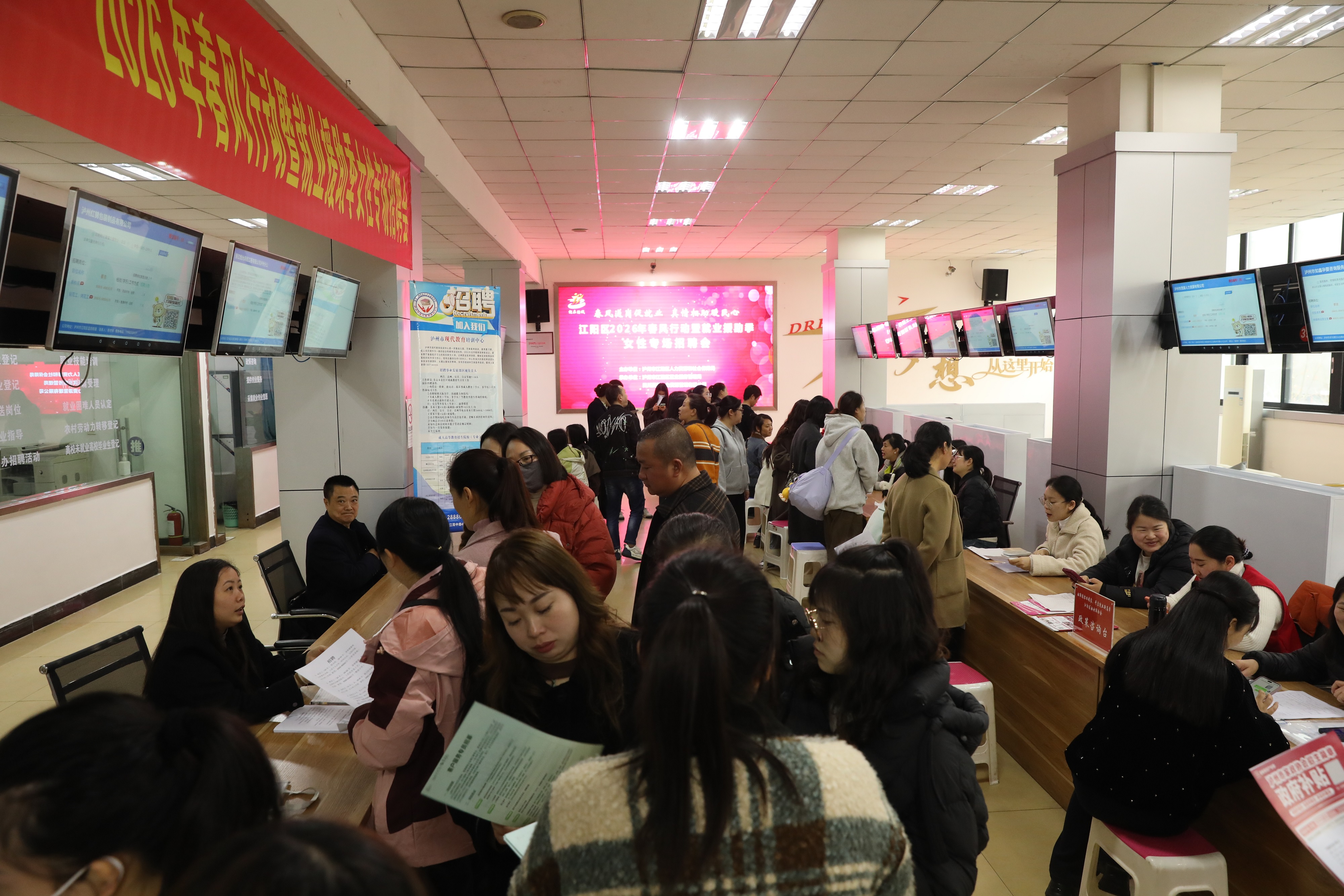 江潮讯(记者 袁玉华)春风送暖意,就业正当时!“三八”节到来之际,3月6日,由江阳区人社局主办的江阳区2026年“春风行动”暨就业援助季女性专场招聘会在江阳区人力资源市场和天远广场同时举办,精准聚焦女性求职需求,重点助力广大待业妇女、应往届高校女毕业生、女农民工等求职人群,进一步促进全区女性劳动者充分就业。
