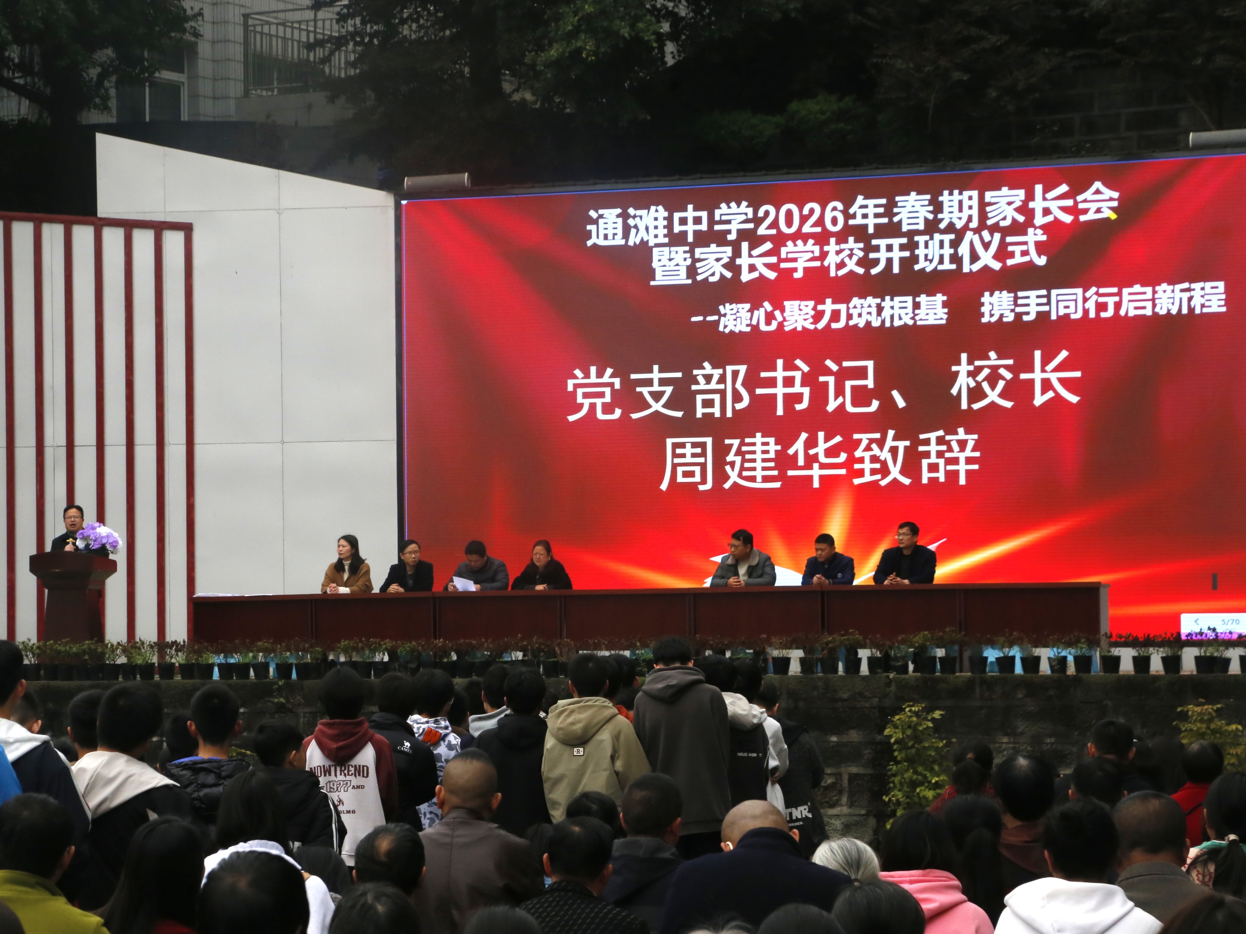 2026年3月6日,江阳区通滩镇初级中学校举行新学期家校共育活动,全校师生及家长齐聚校园,凝聚育人合力,共话成长之道。