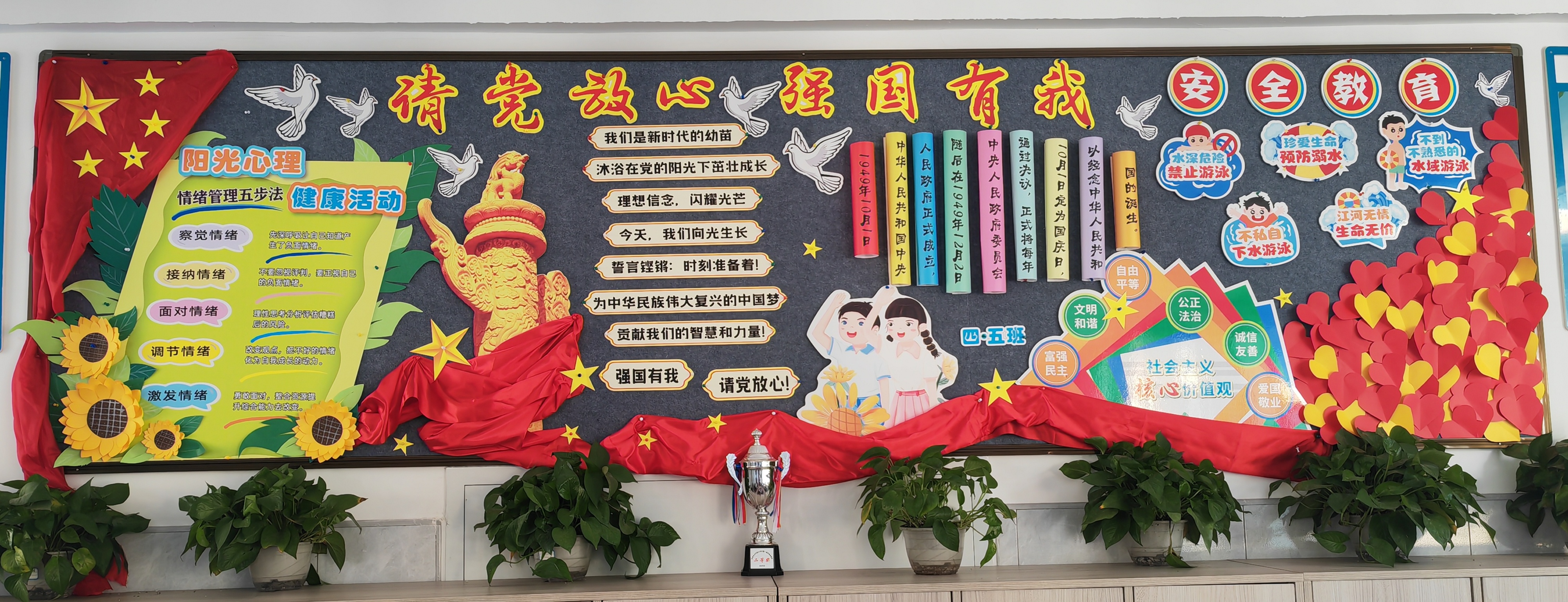 3月9日,泸州市力行路小学校德育处组织开展了2026年春期教室文化评比活动。全校各班积极参与,围绕“社会主义核心价值观、请党放心,强国有我、阳光心理,健康生活、安全教育”四大核心主题精心布局。各班不仅注重外在美化,更深挖内涵,将核心主题及内容融入黑板报的每一个角落。
