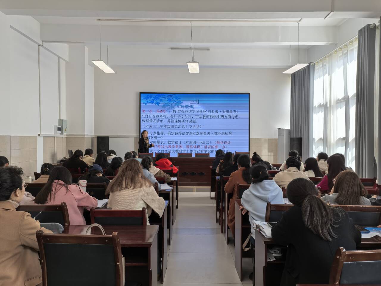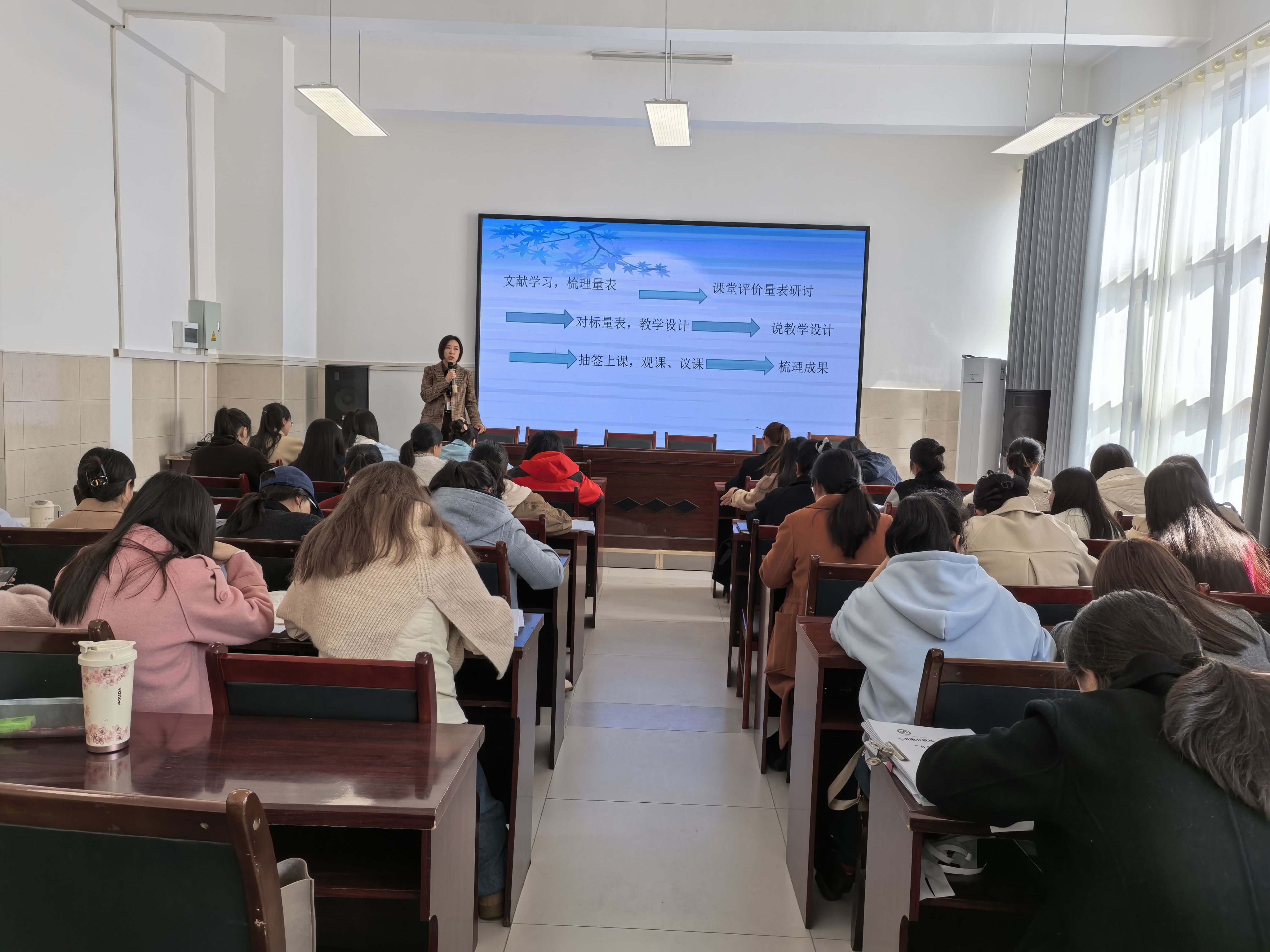 校长徐敏亲临会场,对课堂观测量表进行深度解读,帮助教师精准把握量表内涵,明确课堂观测的维度与要点,为后续课例研修奠定了理论基础。