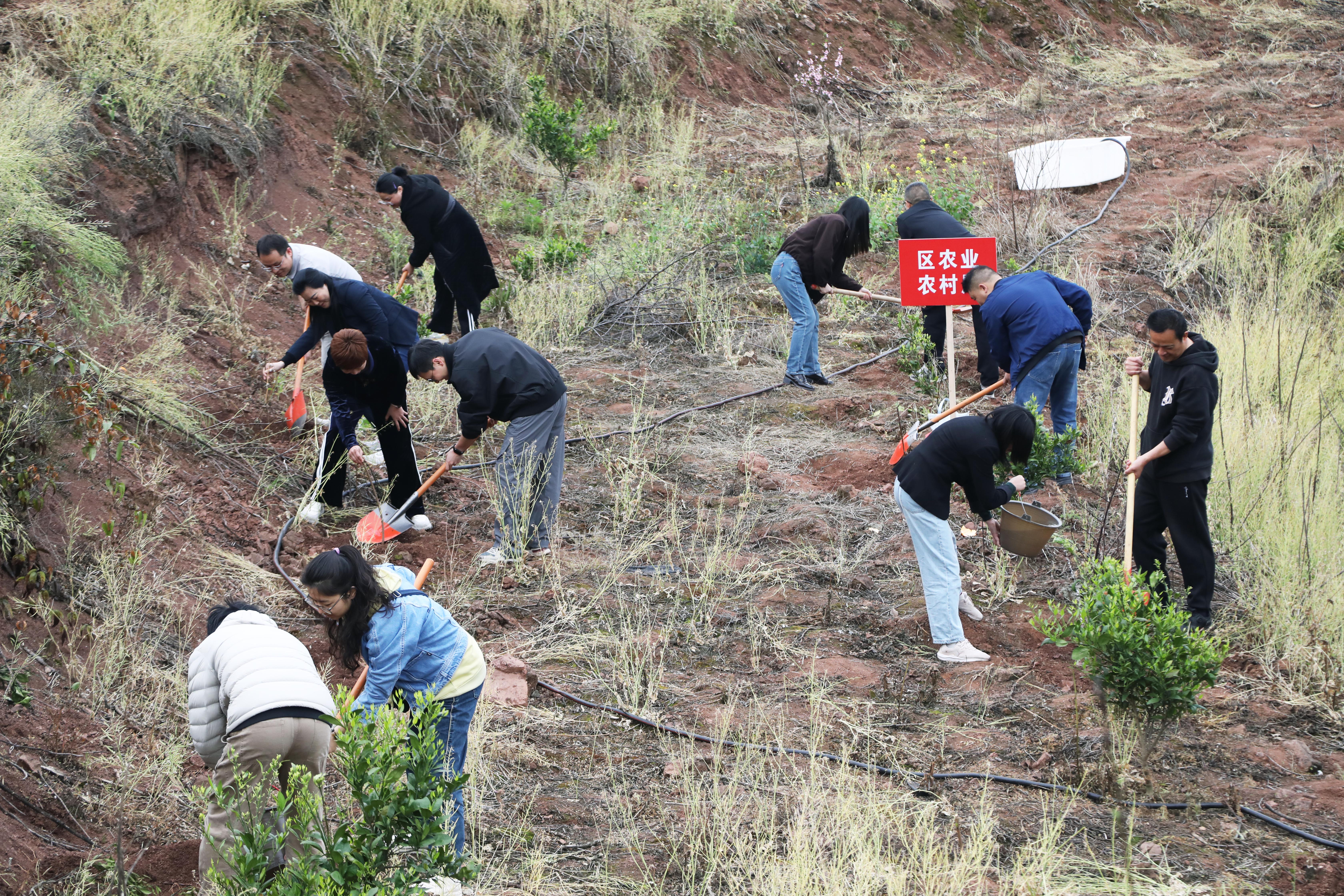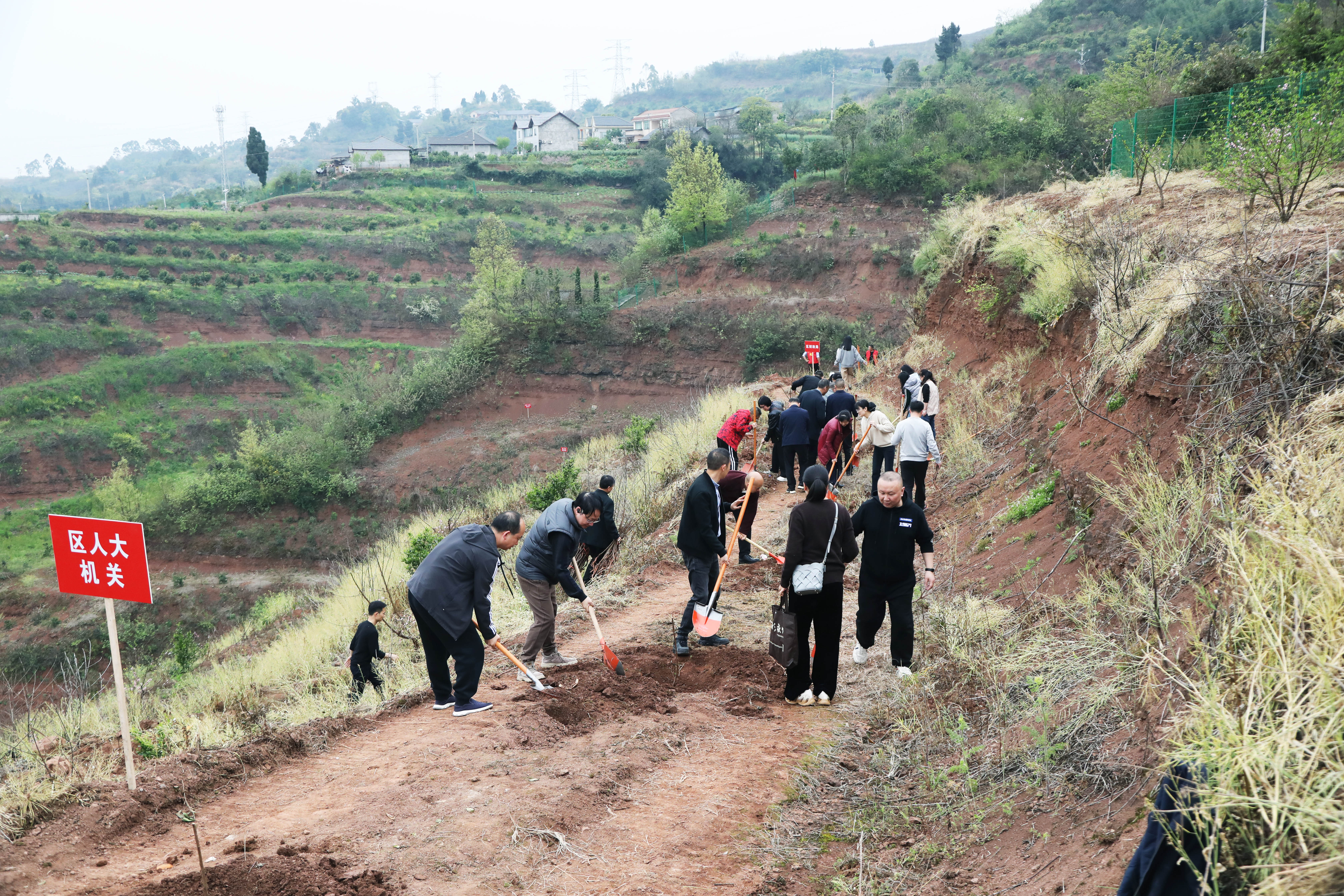 作为活动的主场地,位于方山镇的区级义务植树基地现场人头攒动。来自区级有关部门和方山镇的400余名干部职工干劲十足,大家分工协作,挥锹铲土、扶苗填坑、提水浇灌……一派热火朝天的劳动景象。在大家的共同努力下,3200余株黄桃树苗在60亩基地里“安家落户”。正在忙碌的机关干部邓江擦了擦额头的汗水,满怀期待地说:“希望今天种下的树苗,今后能长成参天大树,为家乡绿化贡献力量,让我们的家园更加美丽。”