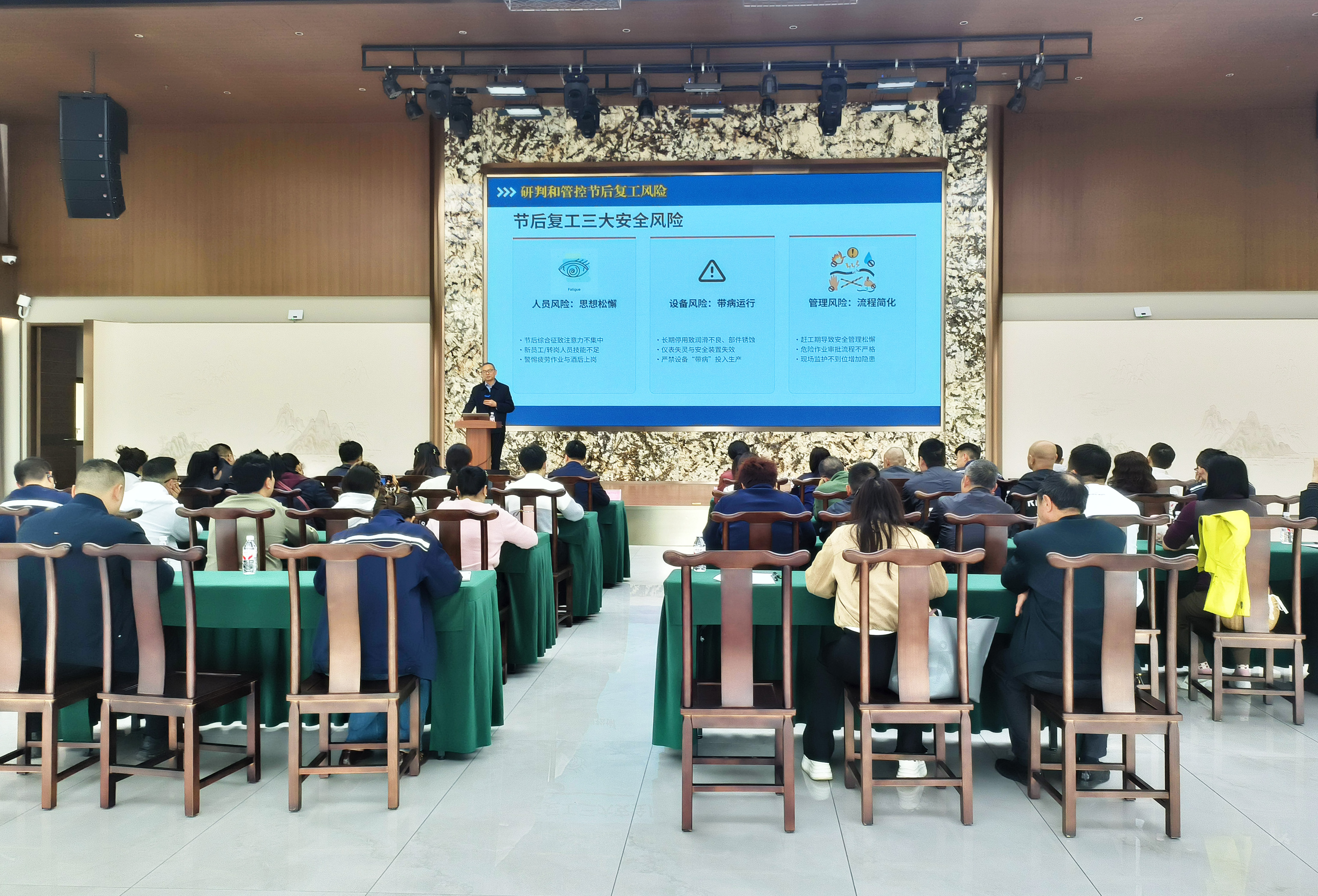 活动对酒类企业复工复产期间的安全工作进行了再强调、再部署。现场邀请了安全环保领域专家进行专题授课辅导。讲座以《切实汲取事故教训,扎实做好复工复产安全环保工作》为题,紧密结合酒类企业生产实际,内容详实、针对性强。专家从精准研判与有效管控节后复工风险、全面排查与系统治理节后事故隐患、细化复工前设备设施的“体检”清单、推广日常设备维护保养的“十字作业法”、明确节后隐患排查重点,以及深刻汲取典型事故教训、加强危险作业管理等多个维度进行了深入剖析和详细讲解,为参训人员提供了具有极强实用性和操作性的指导。