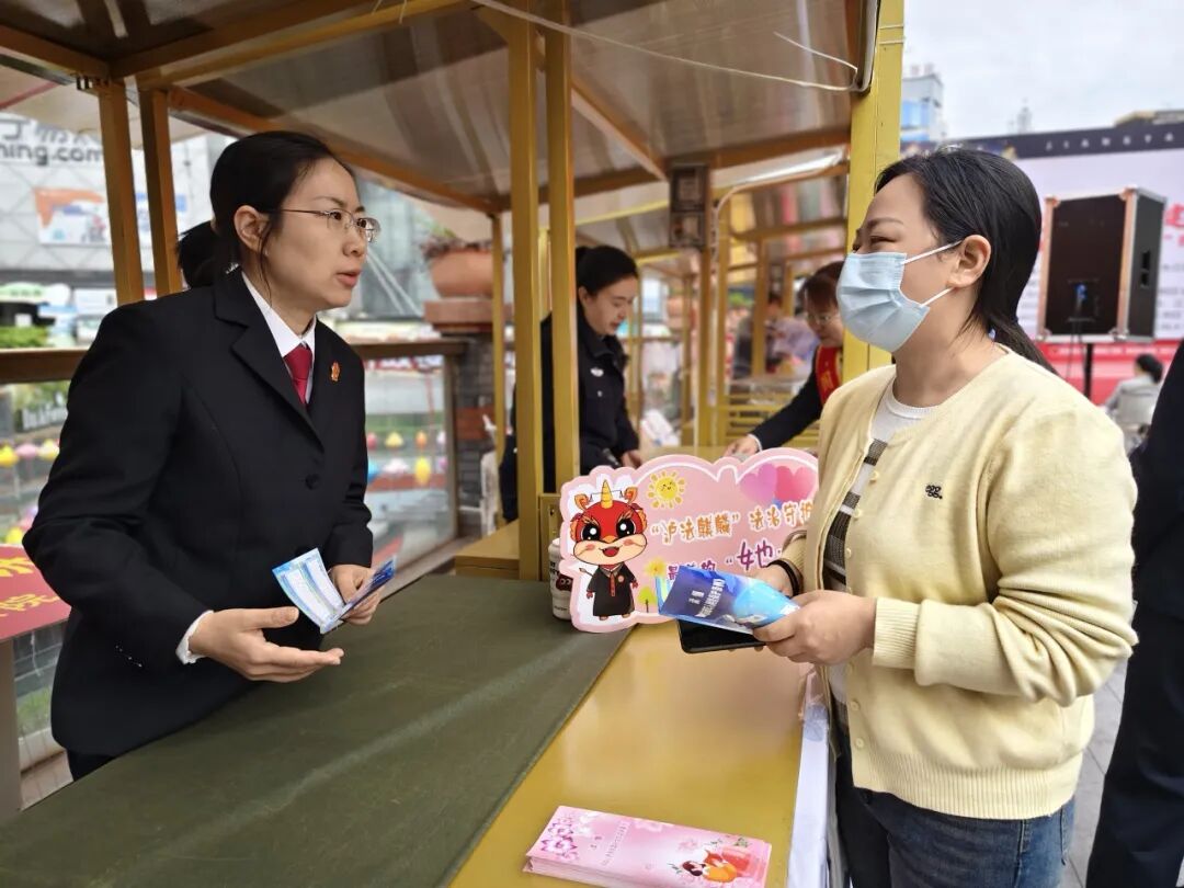江潮讯(记者 袁玉华)3月13日,江阳区法院法官、“泸法麒麟”普法志愿者走上街头,面对面开展妇女儿童权益保护法律法规宣传讲解活动,受到群众赞扬。