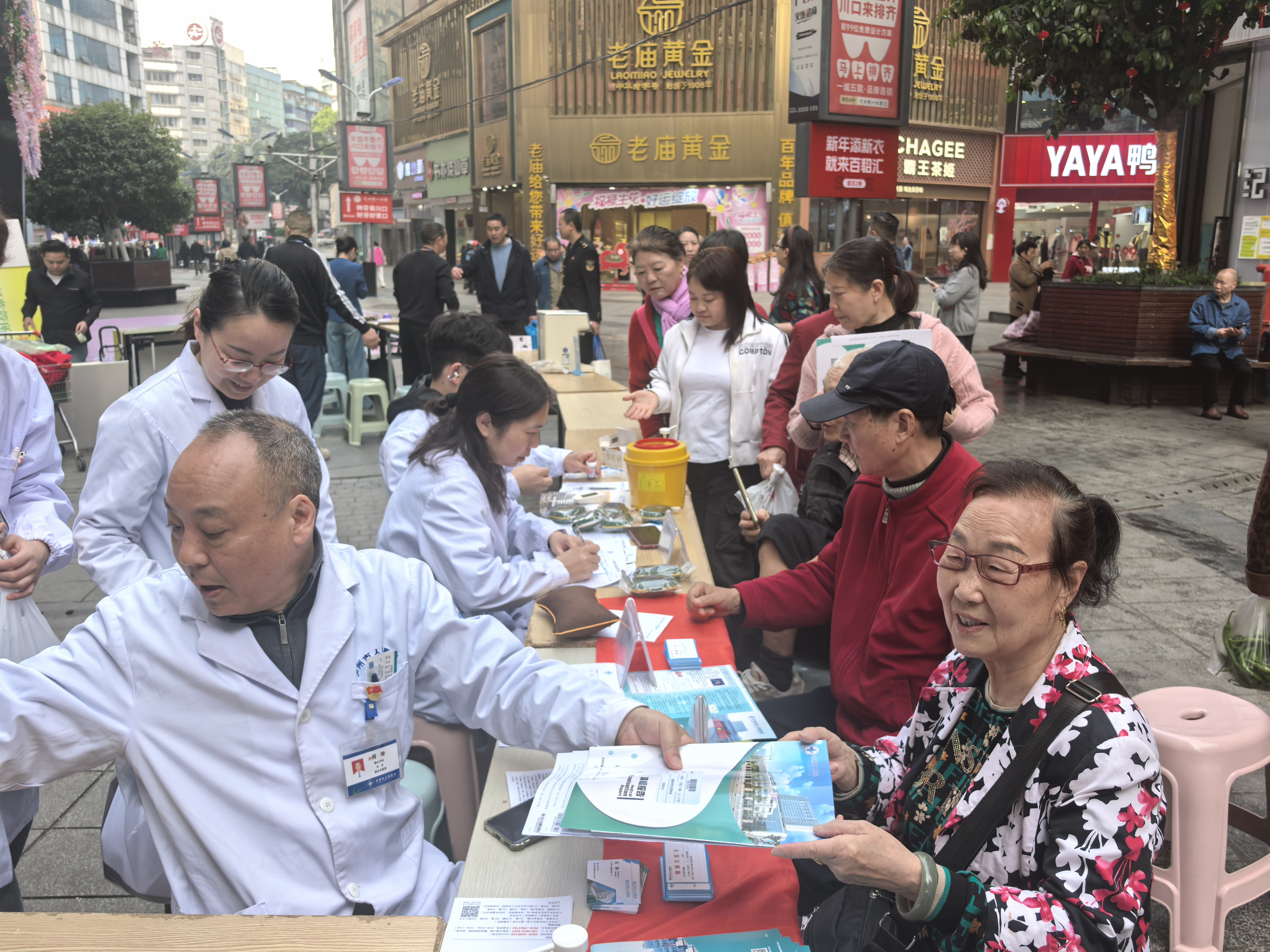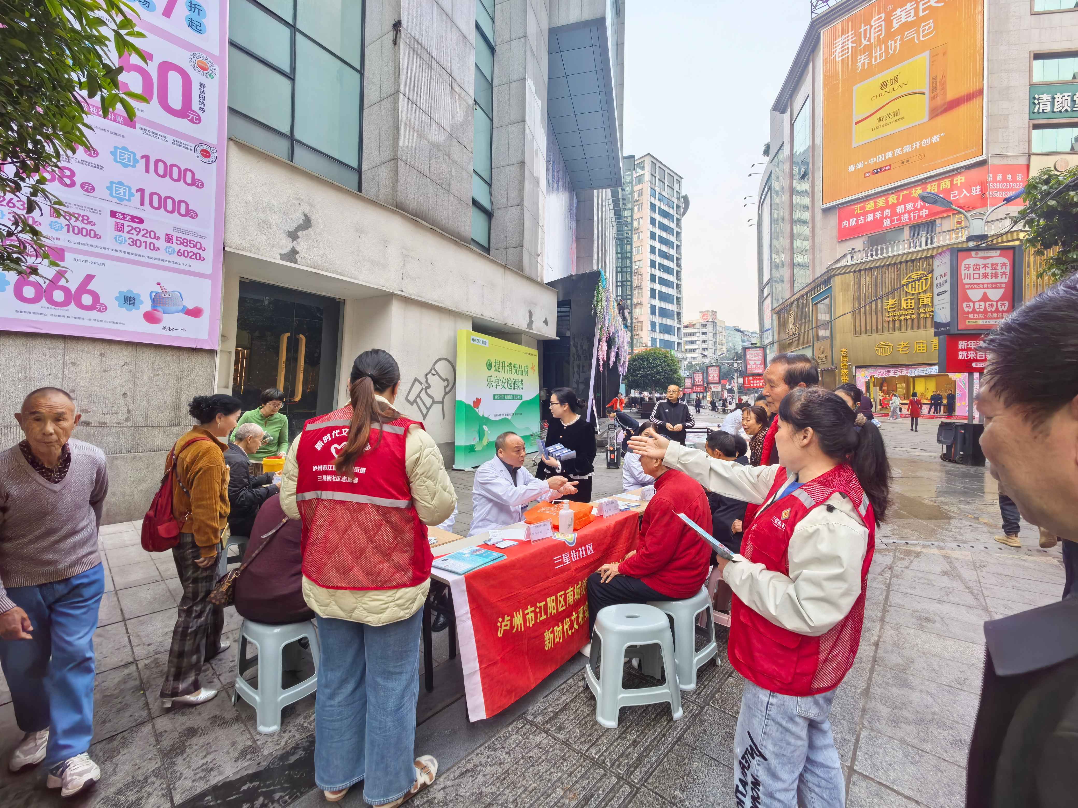 近日,南城街道三星街社区携手泸州市人民医院、重百泸州商场,在水井沟共同开展“人民医院为人民,科普义诊进基层”主题活动,将优质医疗服务与健康关怀送到居民“家门口”,切实提升群众健康获得感与幸福感。活动现场人头攒动、氛围热烈,由胸心外科、内分泌代谢科、老年病科、中医科、感染性疾病科等多科室医护骨干组成的义诊团队,耐心细致地为前来咨询的居民提供专业服务。