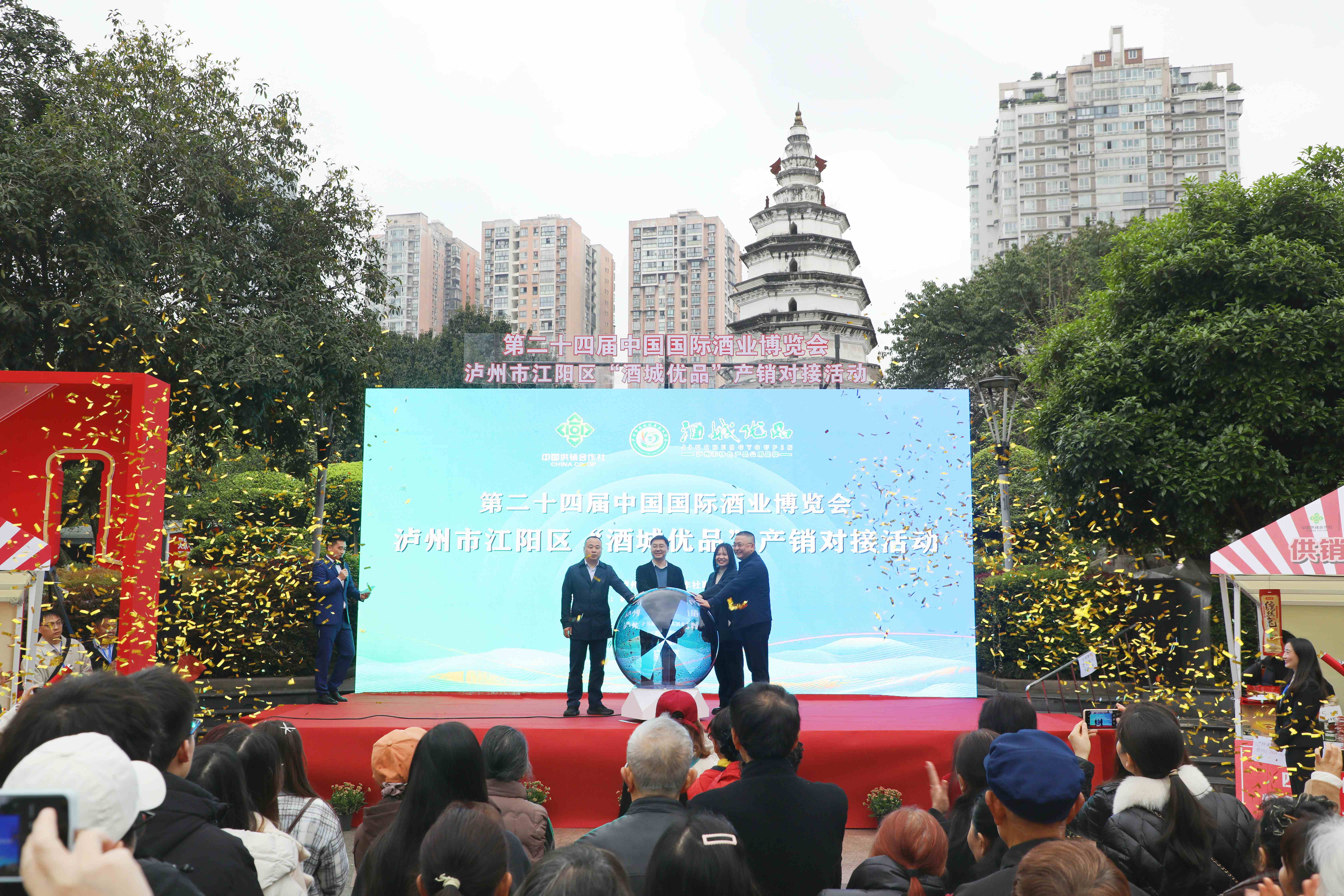 江潮讯(记者 章洺皓)3月19日,第二十四届中国国际酒业博览会盛大开幕。作为酒博会的重要组成部分,江阳区"酒城优品"产销对接活动在北城街道白塔广场同步启动。江阳区委常委、副区长周作昂参加启动仪式。