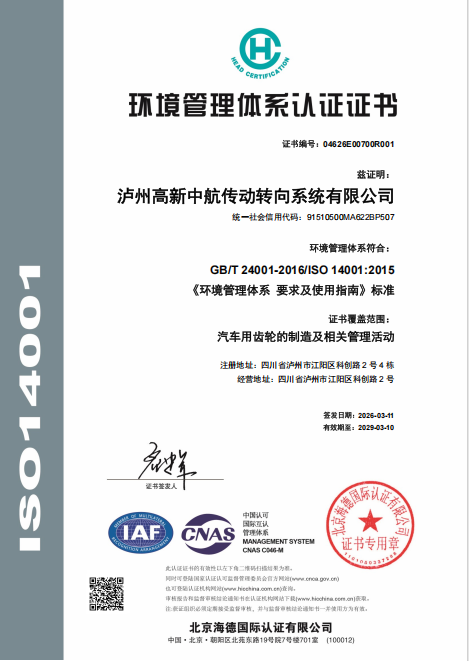 作为一家专注汽车齿轮制造的高端制造企业,中航传动始终将“安全”与“绿色”作为核心发展底色。此次双体系认证的顺利通过,既是行业对公司安全管理水平、环境治理能力的认可,也彰显了企业在环境保护、安全生产、员工健康方面的规范管理与社会责任担当。