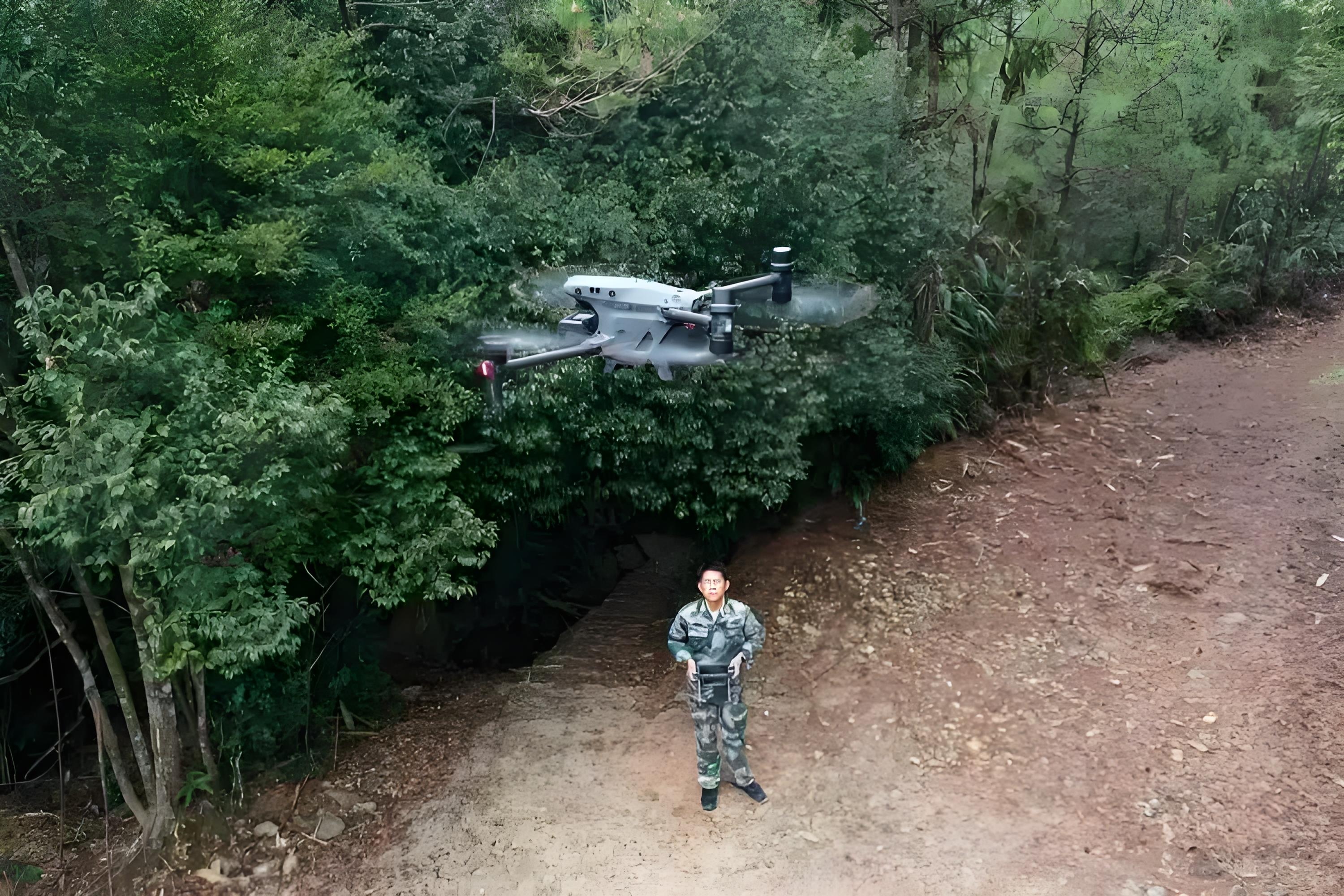 在通滩镇山林上空,一架无人机在操作员的控制下,常态化进行日常巡护。无人机等科技手段的应用,为森林防灭火提供了坚实的科技支撑和安全保障。