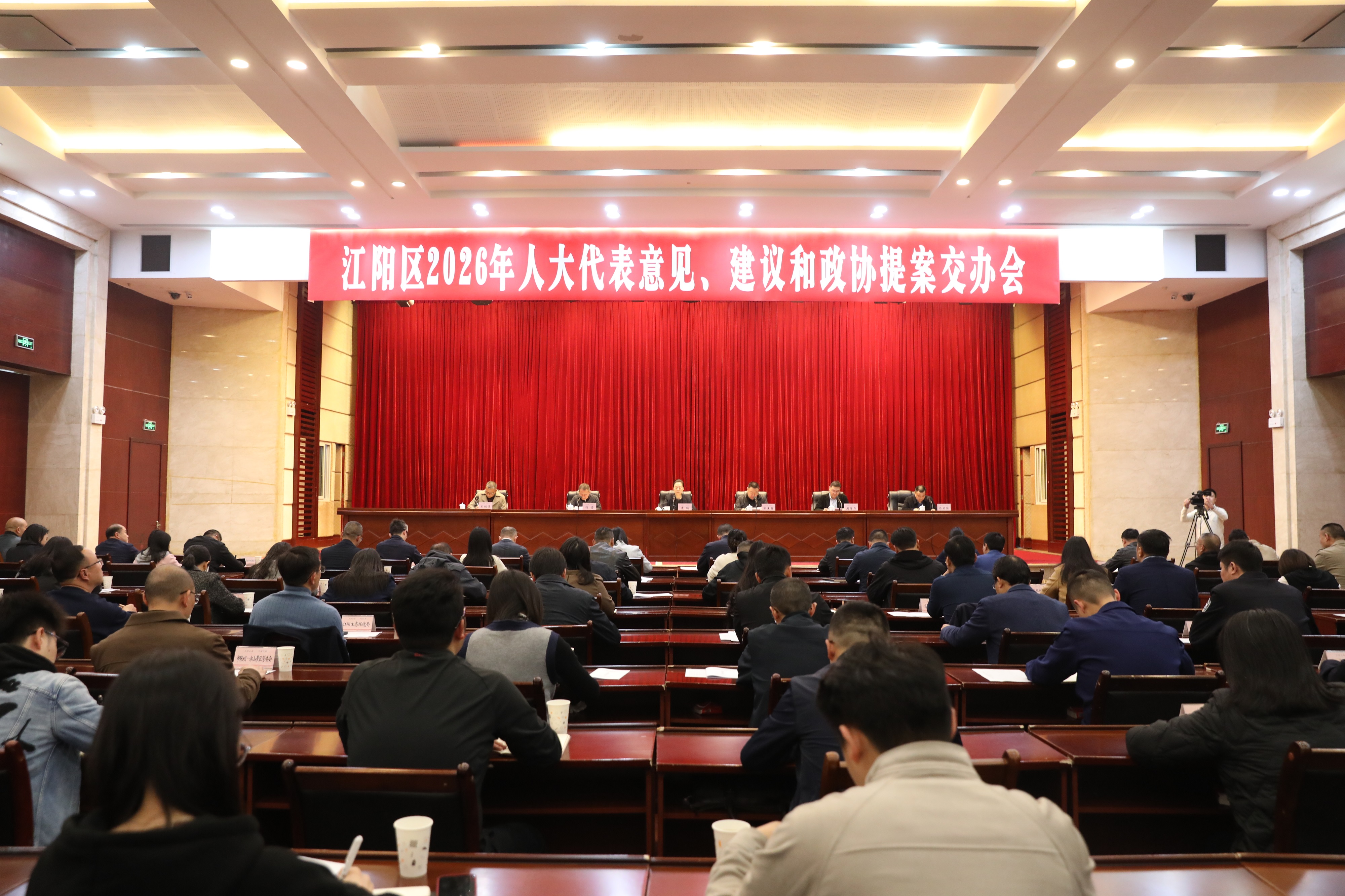 江潮讯(记者 袁玉华)3月27日,江阳区召开2026年区人大代表意见、建议和政协提案交办会,总结去年意见、建议和提案办理情况,安排部署今年工作,进一步压实办理责任、提升办理质效,确保办理高效、优质完成。区委副书记、区长袁瑞,区人大常委会主任张生勇,区政协主席杨雷出席会议。