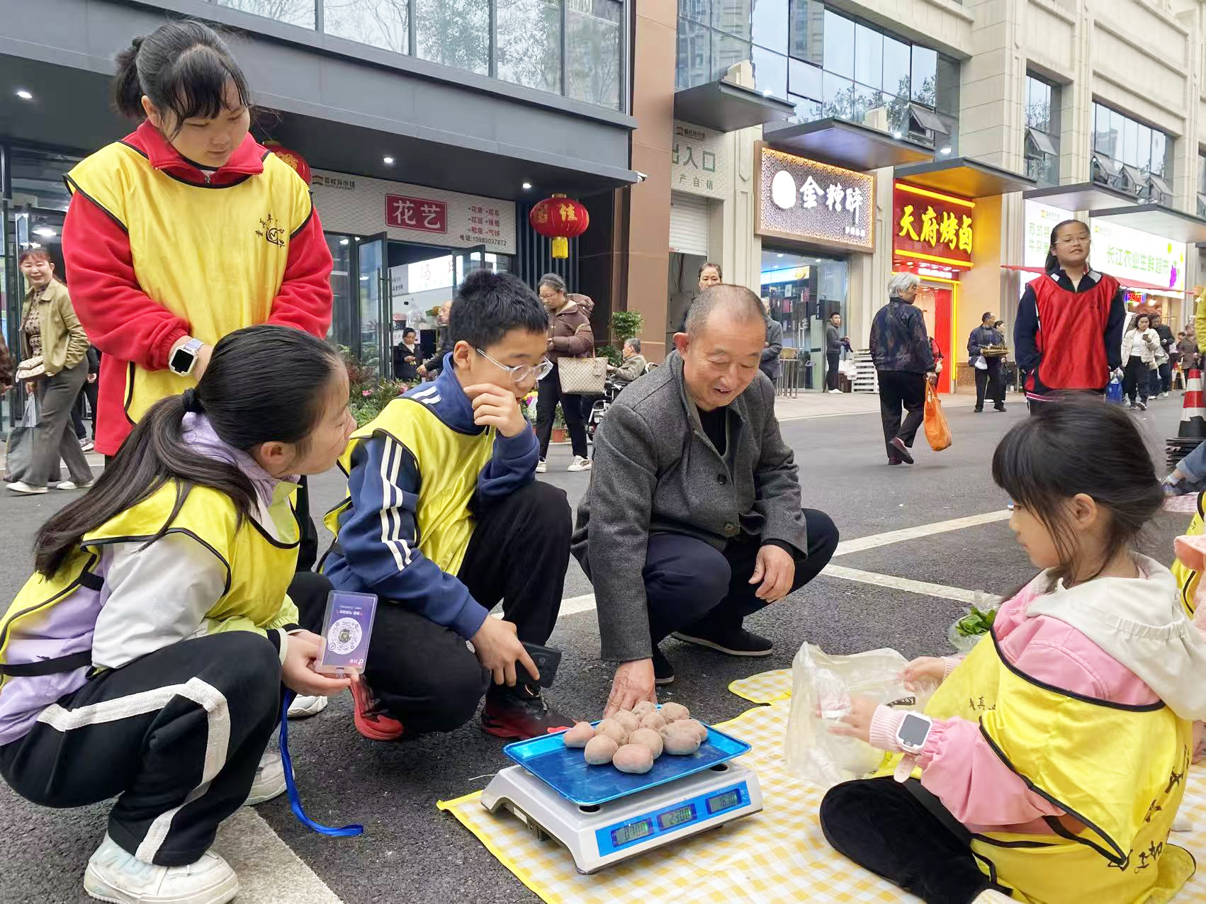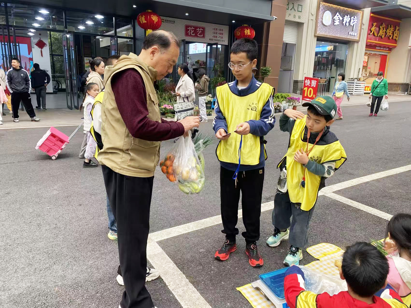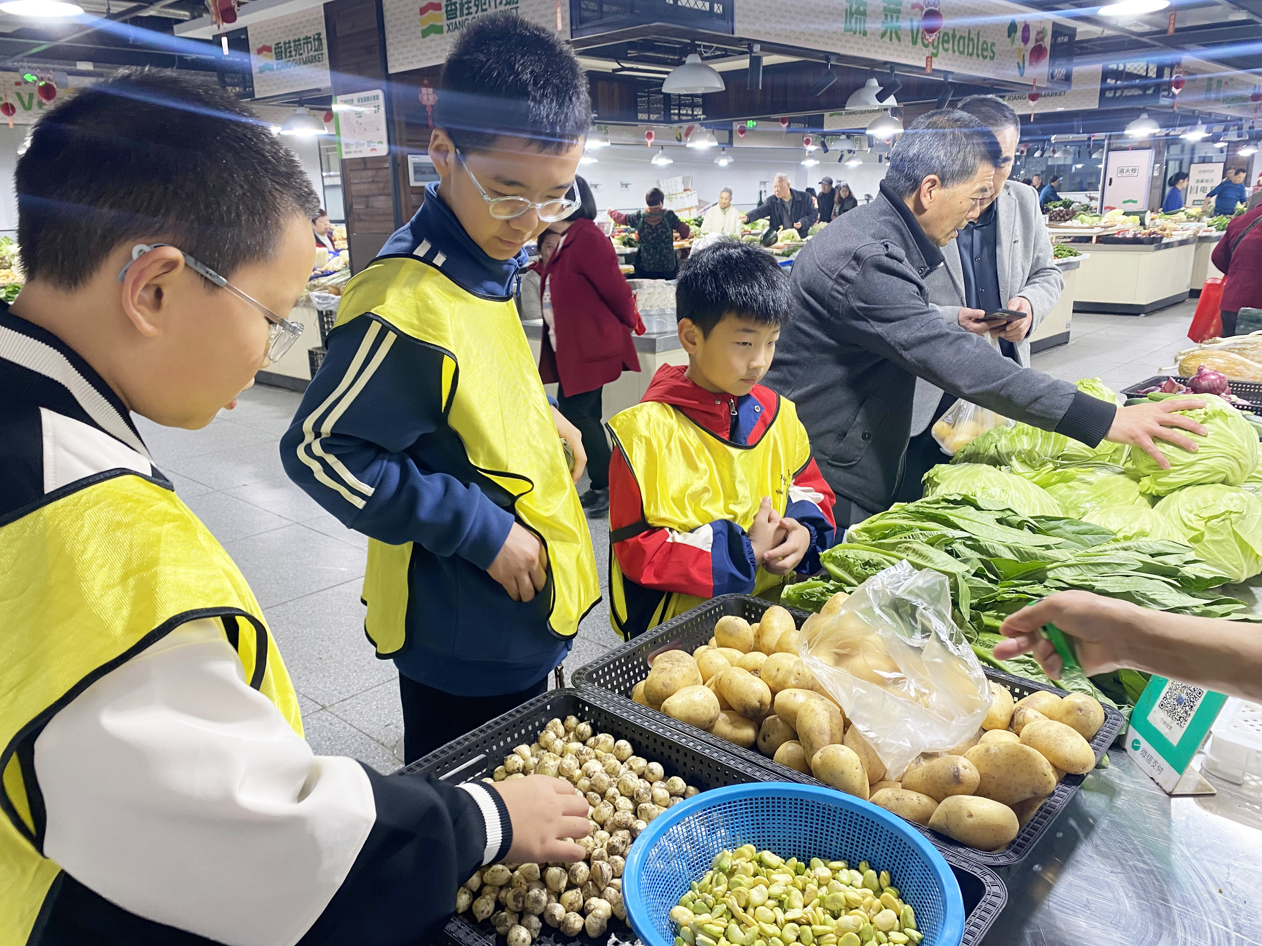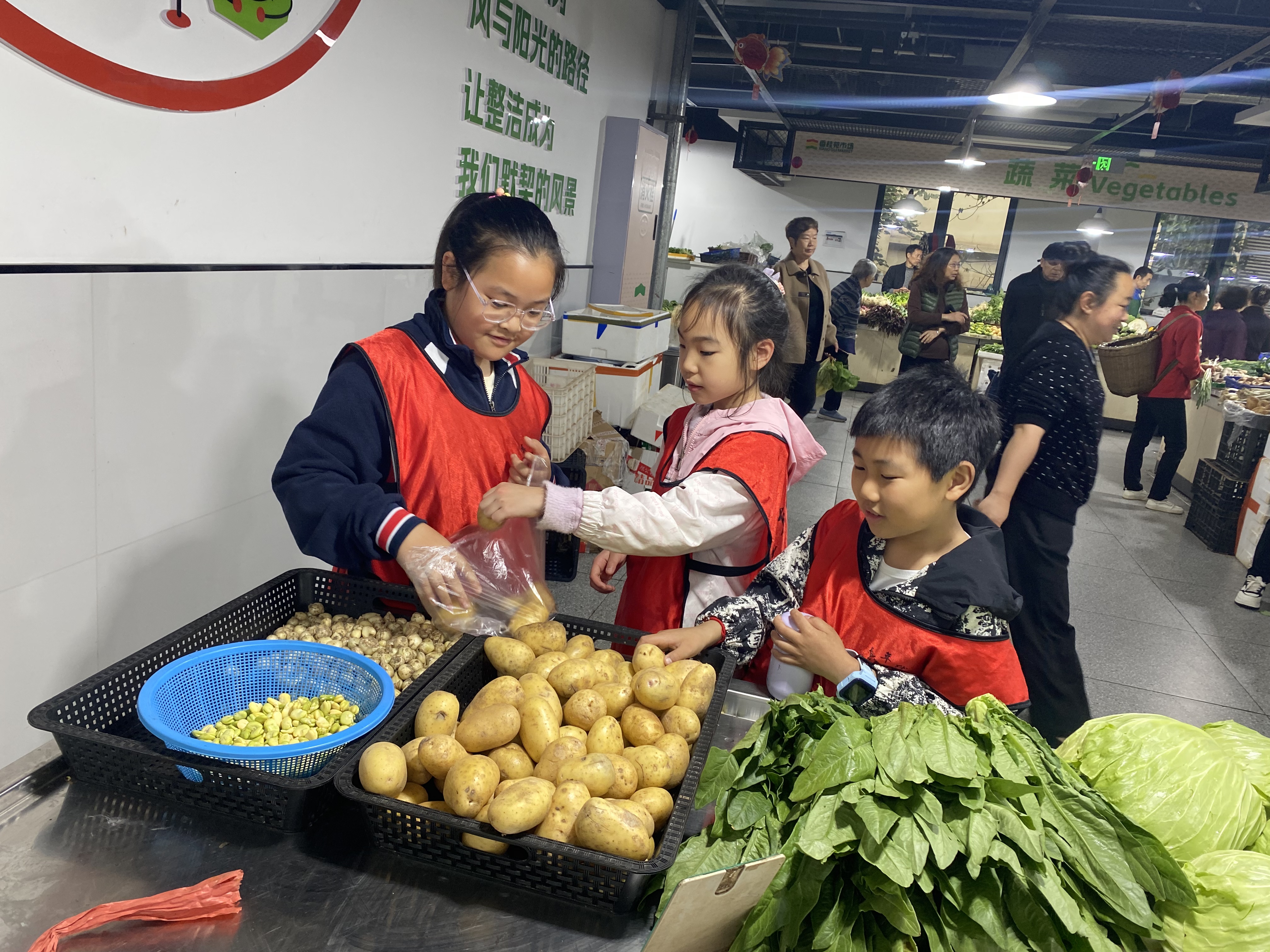 批发进货是第一关。每组领取启动资金,孩子们成了“小采购员”,在红星农贸市场早市里观察什么菜好卖,向摊主虚心请教。有人盯着西红柿的卖相,有人掂量土豆耐不耐放,还有人鼓起勇气跟批发商讨价还价。一番“博弈”后,各组的菜筐里装满了五花八门的时令蔬菜。