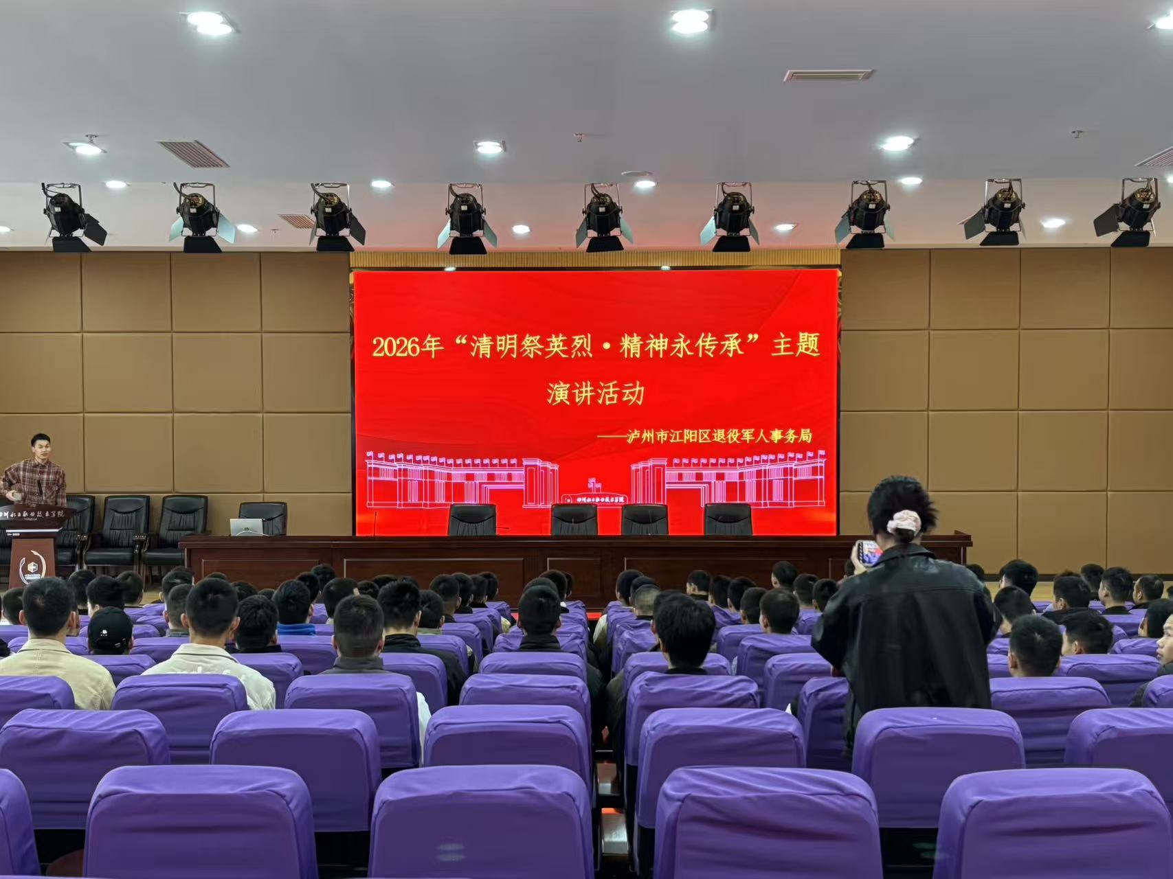 四川化工职业技术学院内,“英烈家书诵读会”温情开展。退役军人代表深情讲述英烈故事,青年学子诵读红色经典,以青春之声致敬先烈、赓续血脉,让红色基因融入青春成长。