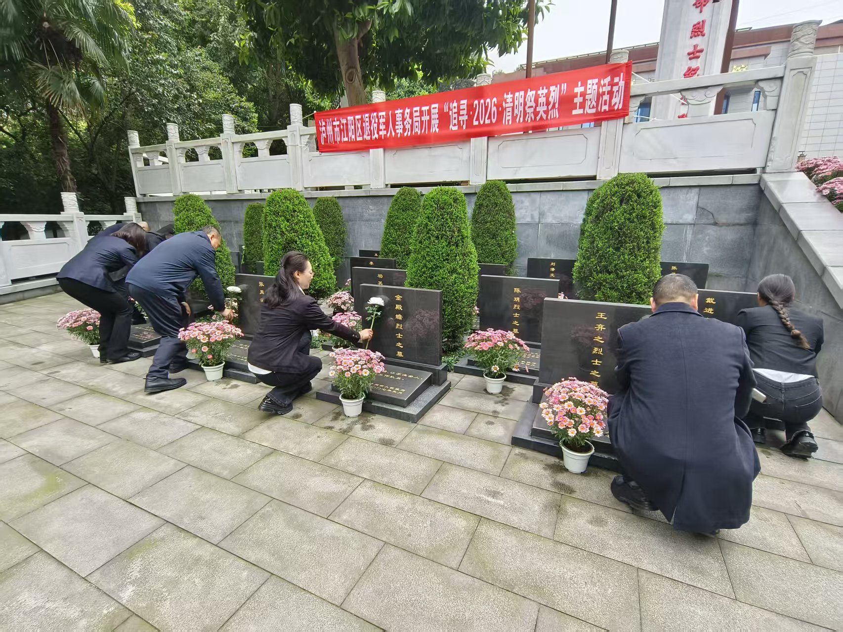 江潮讯(记者 袁玉华 通讯员 郑忠林)松柏凝翠寄哀思,清明追思敬忠魂。3月30日上午,江阳区退役军人事务局组织干部职工、退役军人及青年学生代表,走进泸州市烈士陵园、张映鑫烈士纪念亭、四川化工职业技术学院等地,同步开展“追寻·2026·清明祭英烈”主题活动,以庄重仪式致敬英雄,以赤诚之心传承精神。