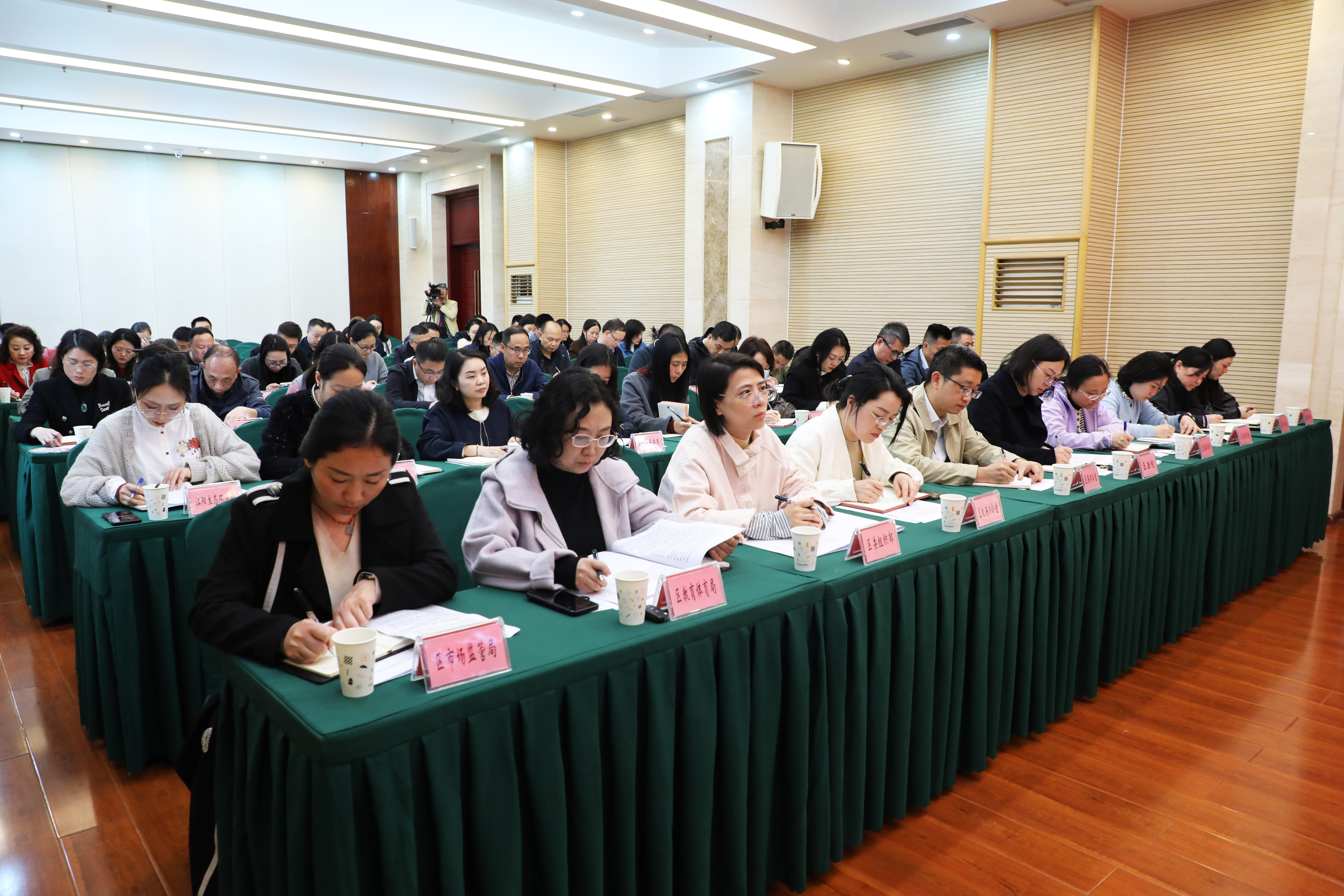 会议通报了江阳区“双报到、双服务”活动优秀案例。会上,区教育和体育局、区市场监管局、区税务局、江阳生态环境局等单位作了交流发言。