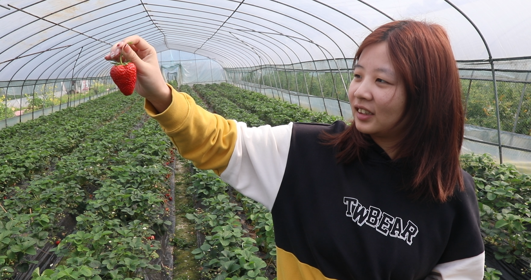 游客王唯也对园区的果实赞不绝口:“今天朋友带我来摘的草莓太安逸了,太好吃、太巴适了,周末我还要把家人朋友喊来一起摘,真的很惬意。”
