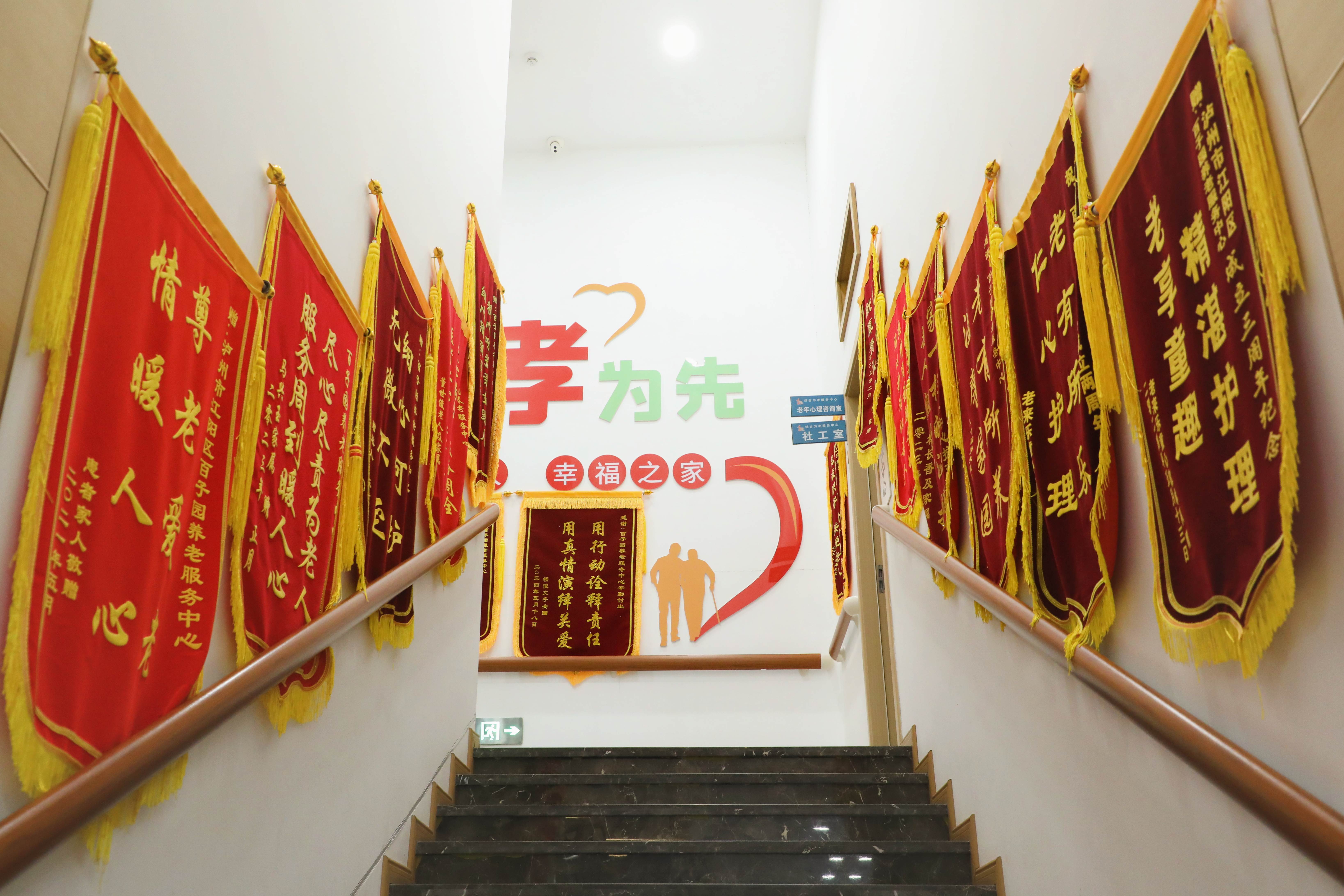 养老服务中心居住老人家属赠送的锦旗 章洺皓 摄