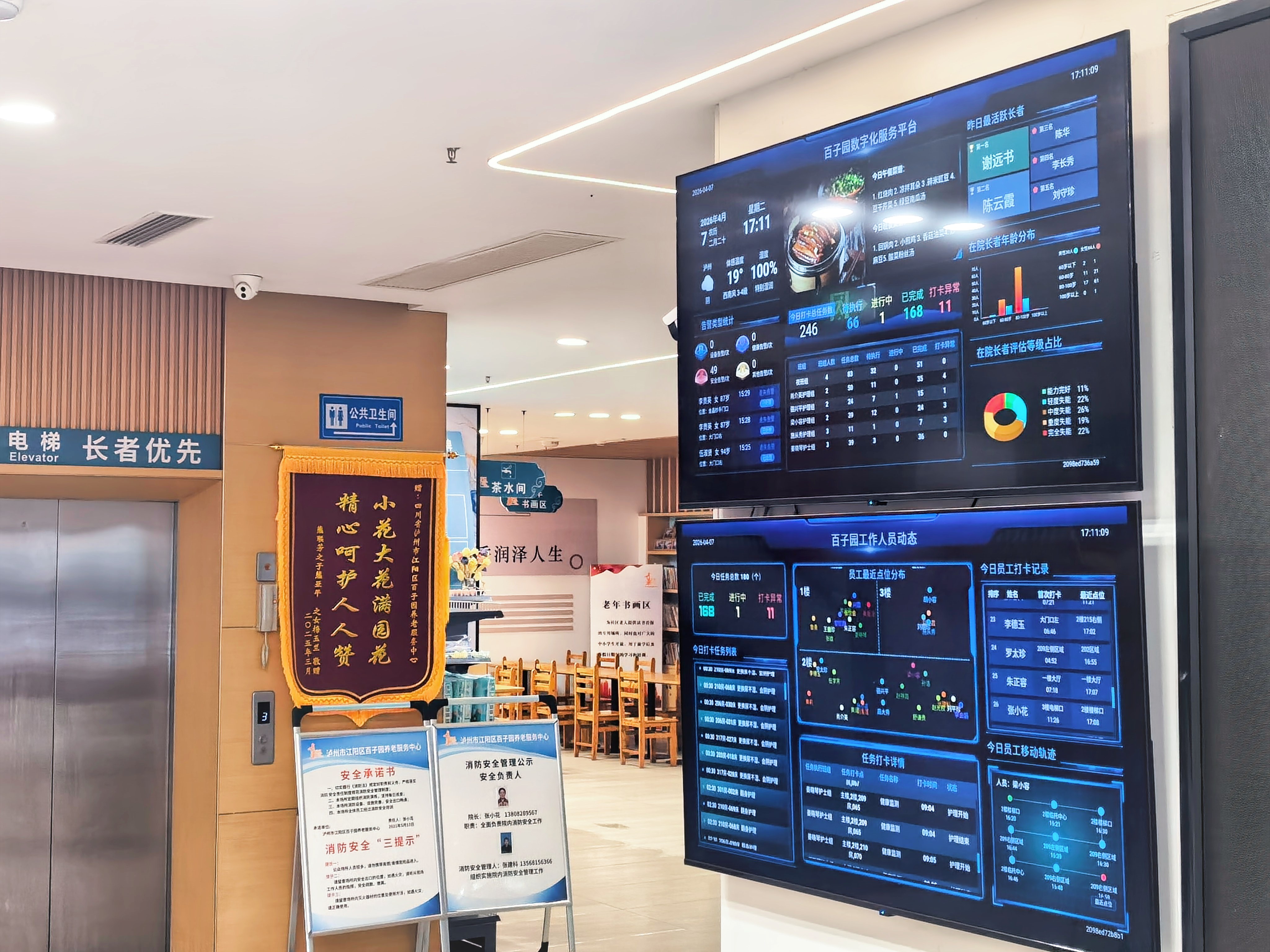 数字化管理让服务更精准高效。中心通过实时打卡系统,动态监管员工服务点位与任务执行。“今日打卡总任务246项,待执行多少、进行中多少、已完成多少、打卡异常多少,一目了然。”张小花向记者展示系统界面,“如果今天应该给老人洗澡却没去洗,就会显示一排红字。”