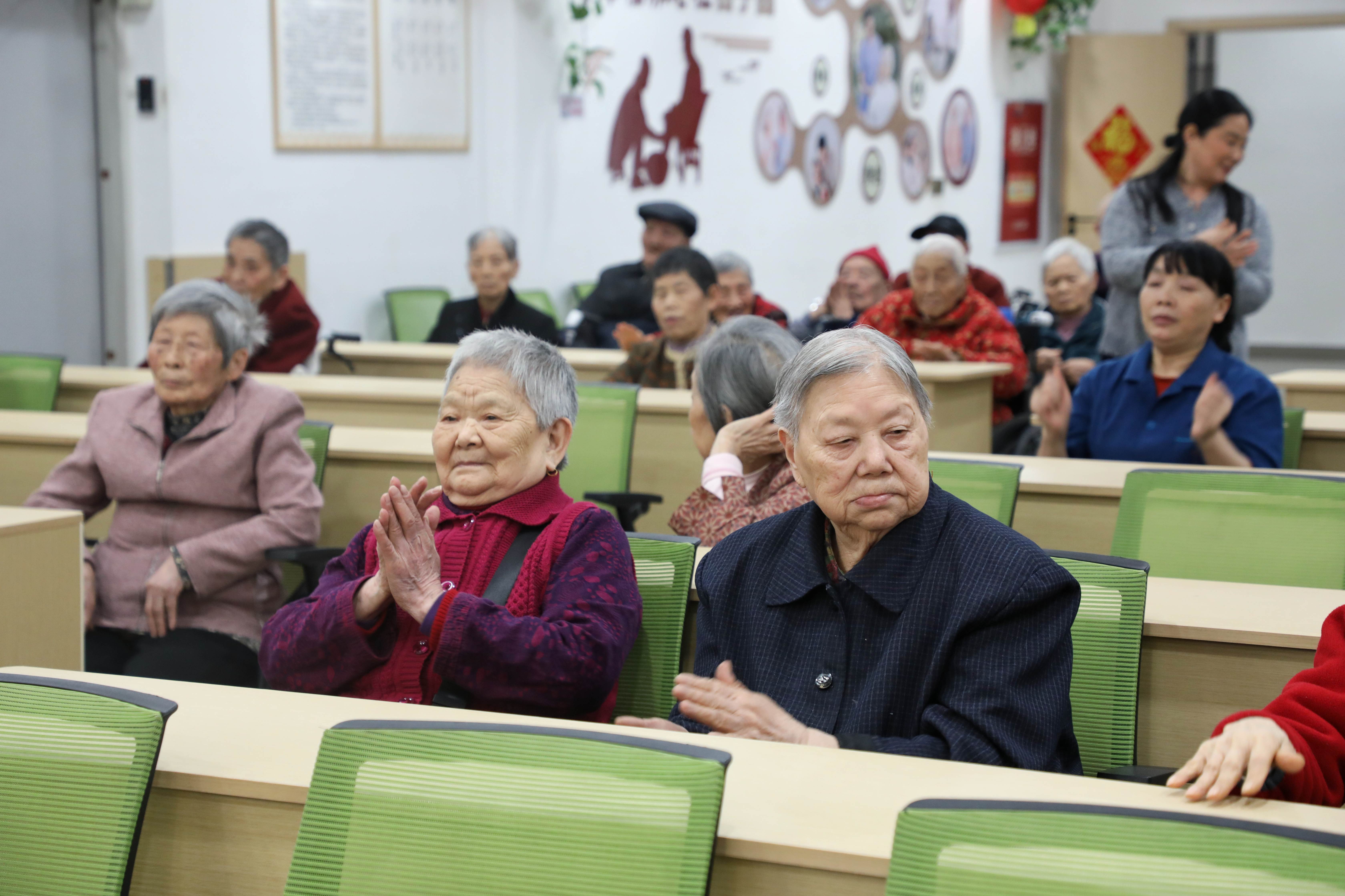 活动室内做拍手游戏的老人们 章洺皓 摄