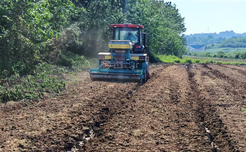 江潮讯(记者 张红)清明过后,气温回升,正是高粱播栽的黄金时节。江阳区分水岭镇万亩粮油复合现代农业园内,四川宸佳霖农业科技有限公司的5台播种机在田垄间来回穿梭,一次性完成播种、施肥作业,尽显“科技范”。