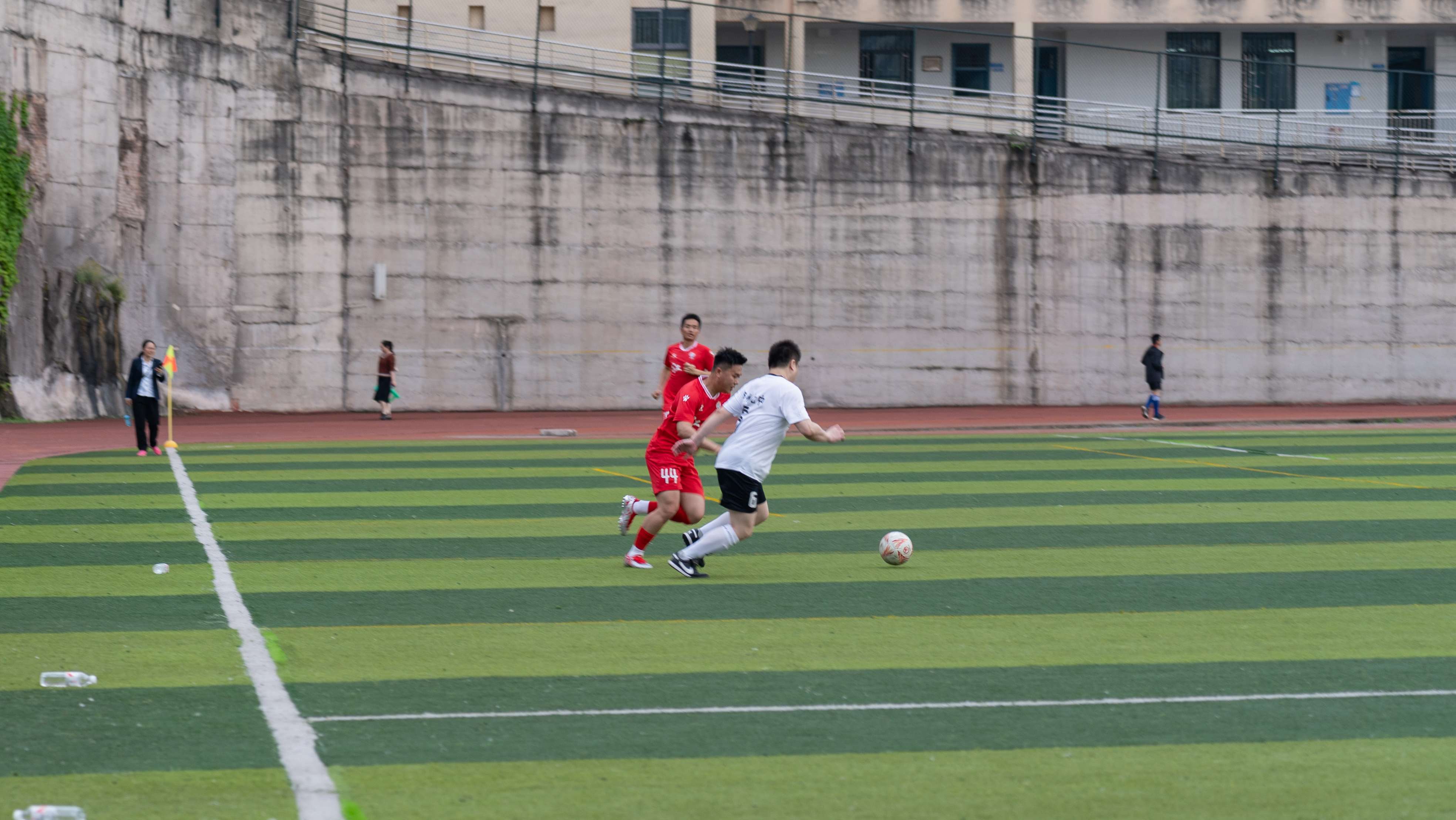 学校绿茵场上,随着裁判哨声响起,专业球员率先进入节奏。足球在他们脚下快速流转,一脚出球、跑位接应,整个队伍像一台精密运转的机器。学校联队同样斗志昂扬,教师利用经验卡住位置,家长在边路尝试突破,学生则奋力奔跑逼抢。双方你来我往,操场上加油声此起彼伏。