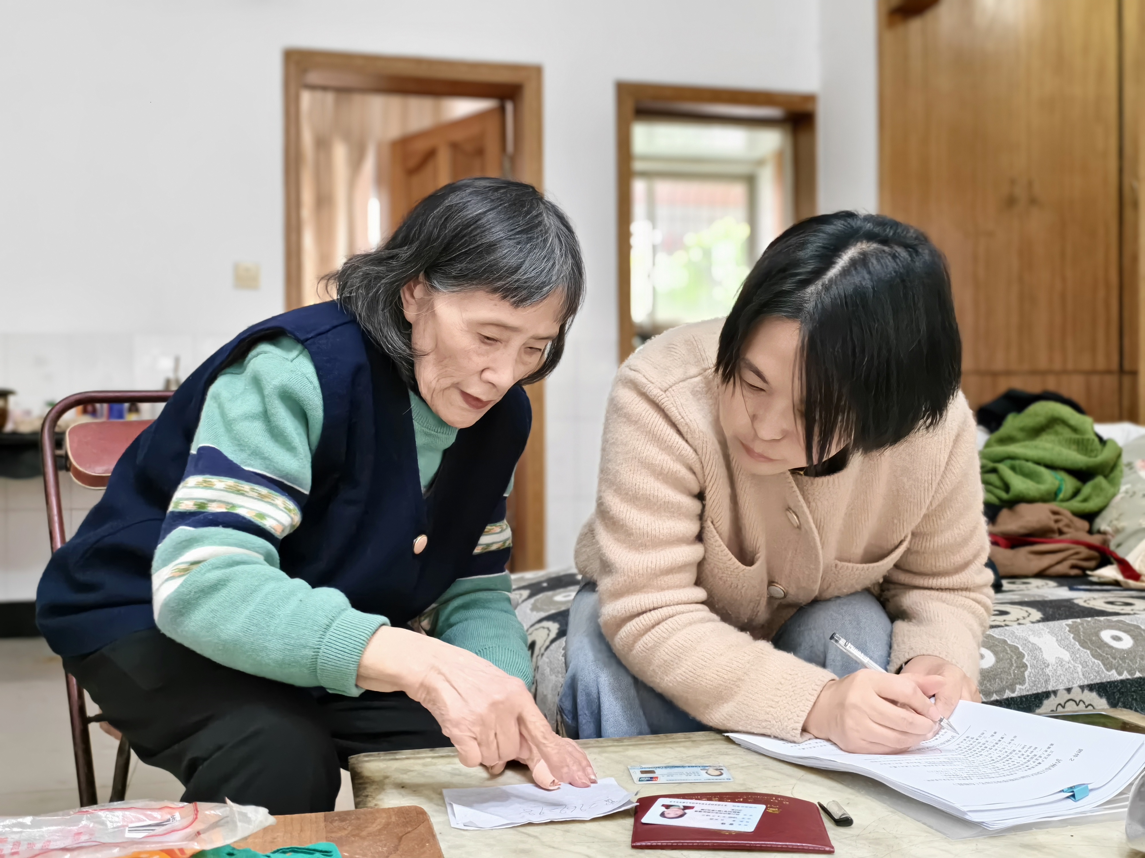 为尽快完成曾锋老人的高龄津贴登记,纪念标社区迅速联动蓝田街道重湾社区,请求协助核查。重湾社区第一时间派人一起实地排查,终于找到了曾锋老人。当社区工作人员敲开老人家门,看到老人安详的面容时,所有的疲惫都化为了释然。纪念标社区工作人员当场在老人家中完成资料核验、手续办理,在老人八十岁生日前夕,办好了享受高龄津贴的手续。