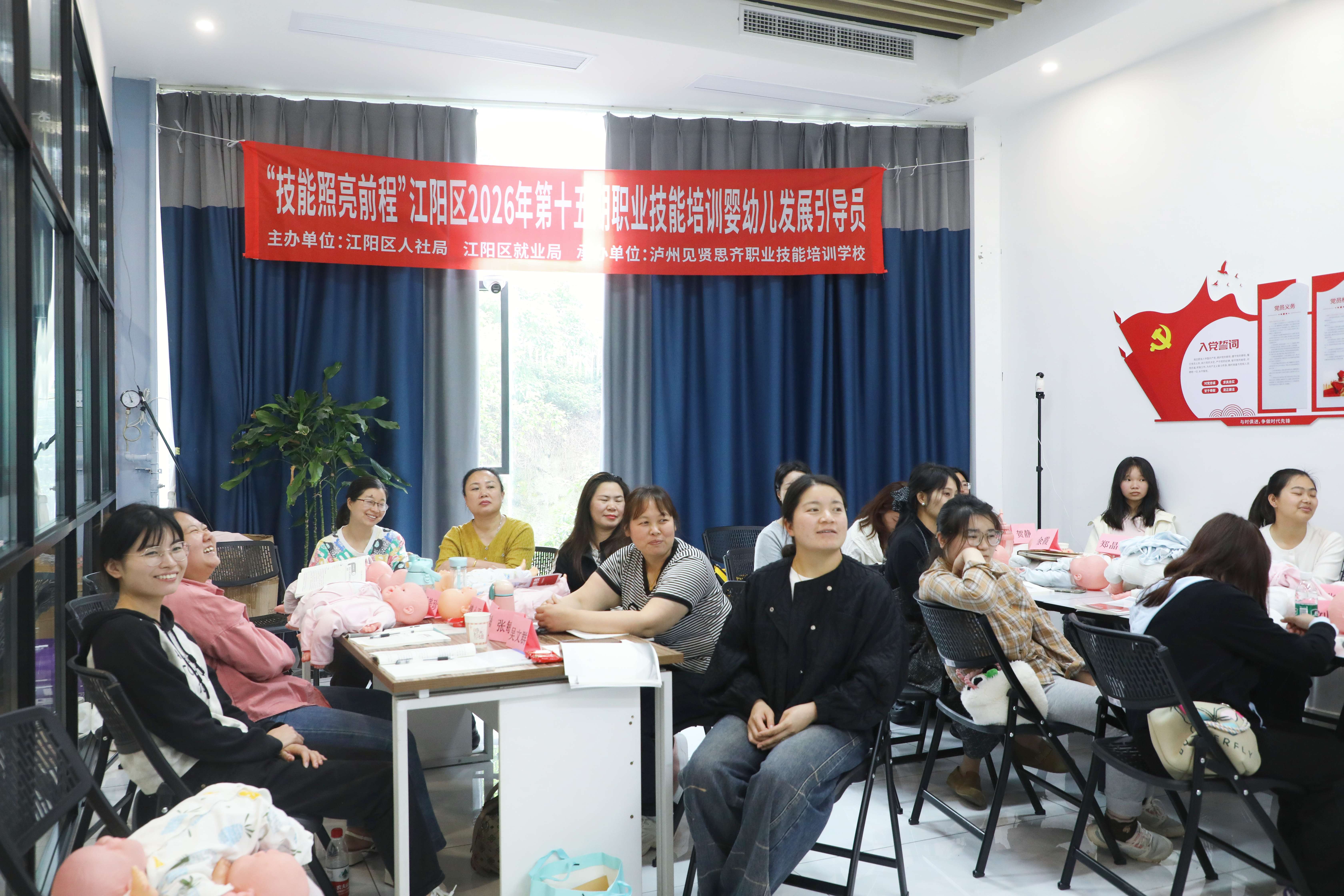 江潮讯(记者 章洺皓)4月15日,江阳区2026年新一期补贴技能培训课程在泸州见贤思齐职业技能培训学校正式开课。本期培训共开设8个班,吸引300余名学员参训,涵盖互联网营销师、无人机驾驶员、保育师、家政服务员等紧缺工种,全程免培训费、考试费、报名费,并提供免费午餐。