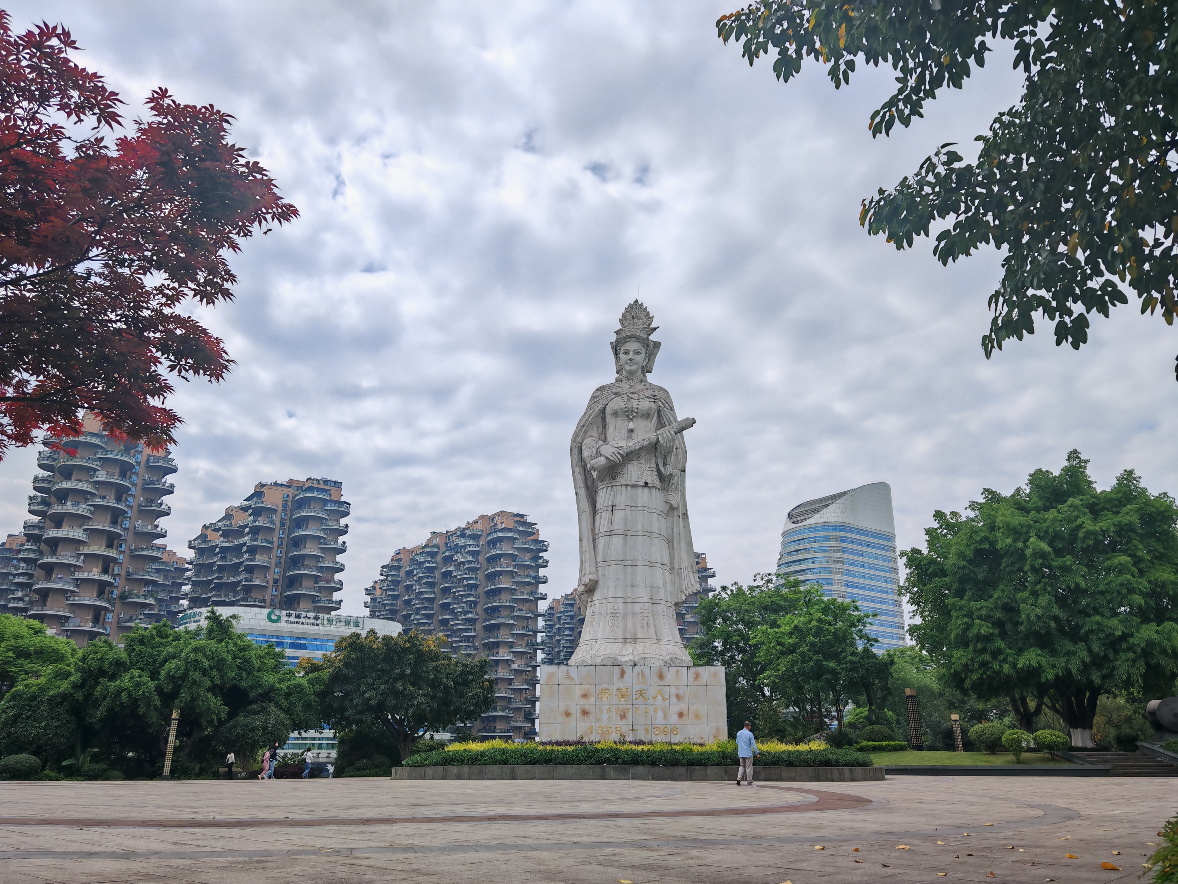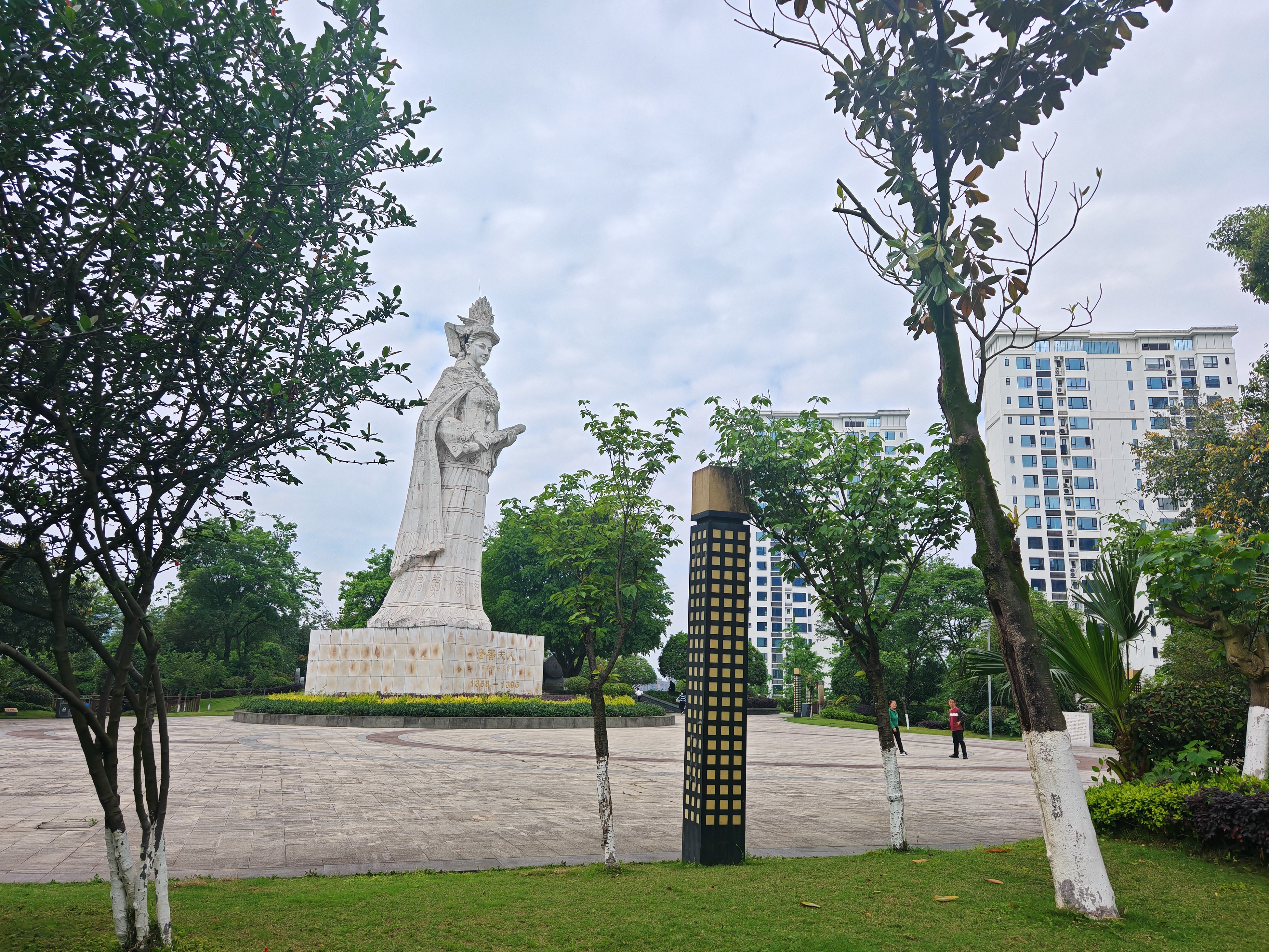 步入公园,22米高的奢香夫人主雕塑巍然矗立,身姿雍容大气,面容端庄温婉,目光坚定地俯瞰着这片土地,铸铜材质在阳光下泛着沉稳光泽,尽显明代彝族女首领的风骨与气度,成为公园最醒目的精神坐标。