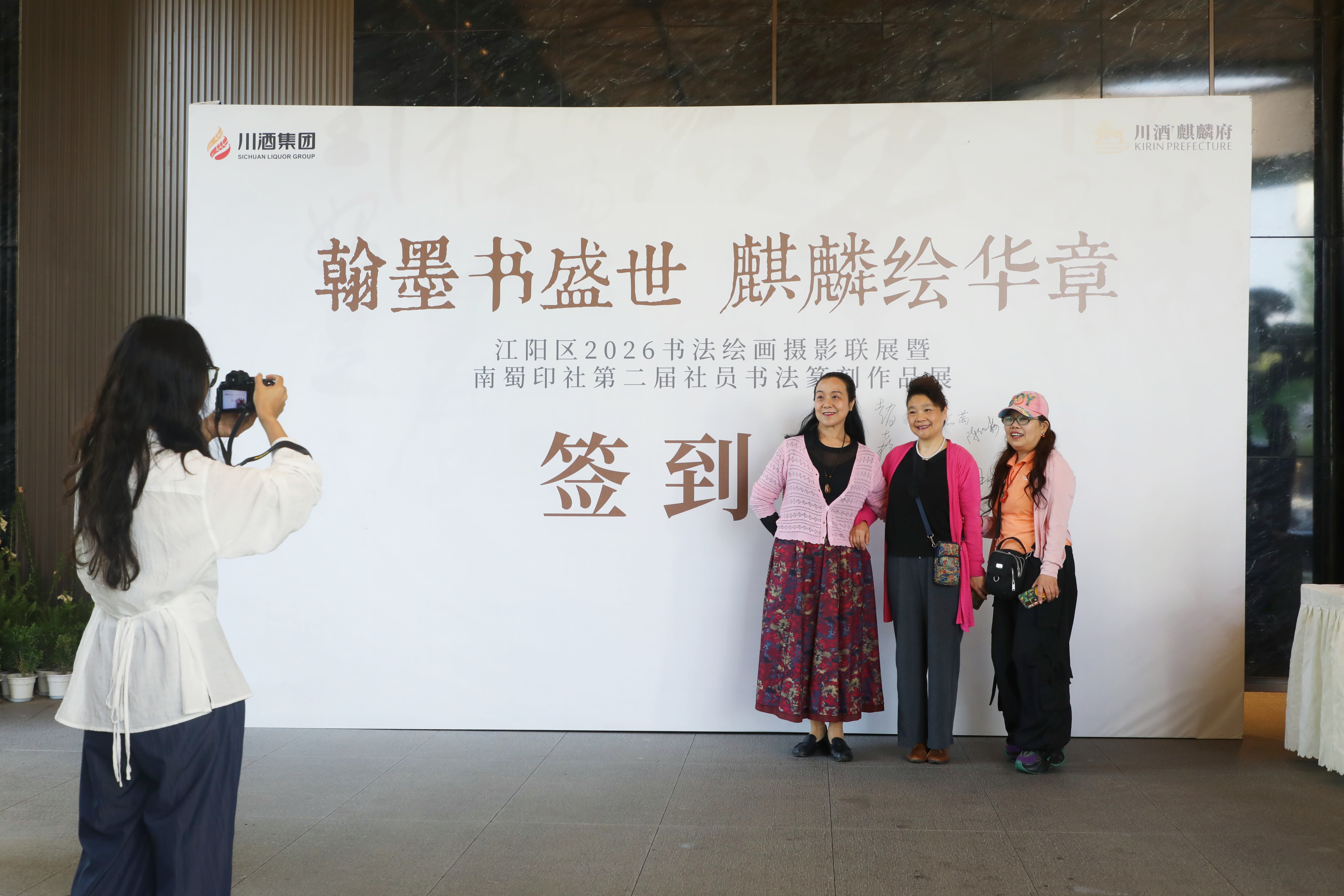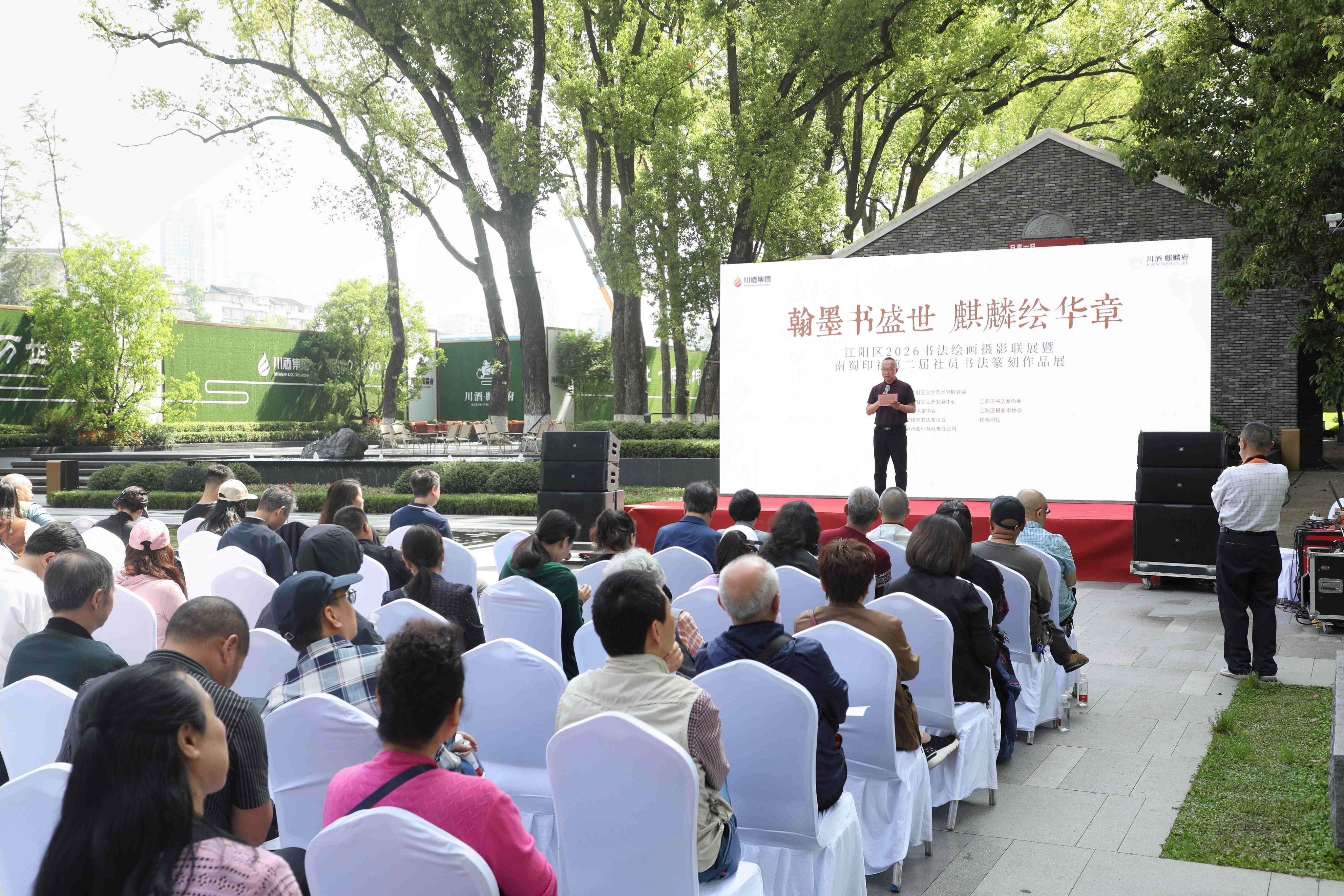 江潮讯(记者 章洺皓 赵卓然)4月17日上午,“翰墨书盛世 麒麟绘华章”江阳区2026书法绘画摄影联展暨南蜀印社第二届社员书法篆刻作品展,在江阳区川酒麒麟府美学馆正式开幕。展览共展出约100幅优秀作品,涵盖书法、篆刻、绘画、摄影等门类,集中展现了近年来江阳区的文化魅力与时代风貌。