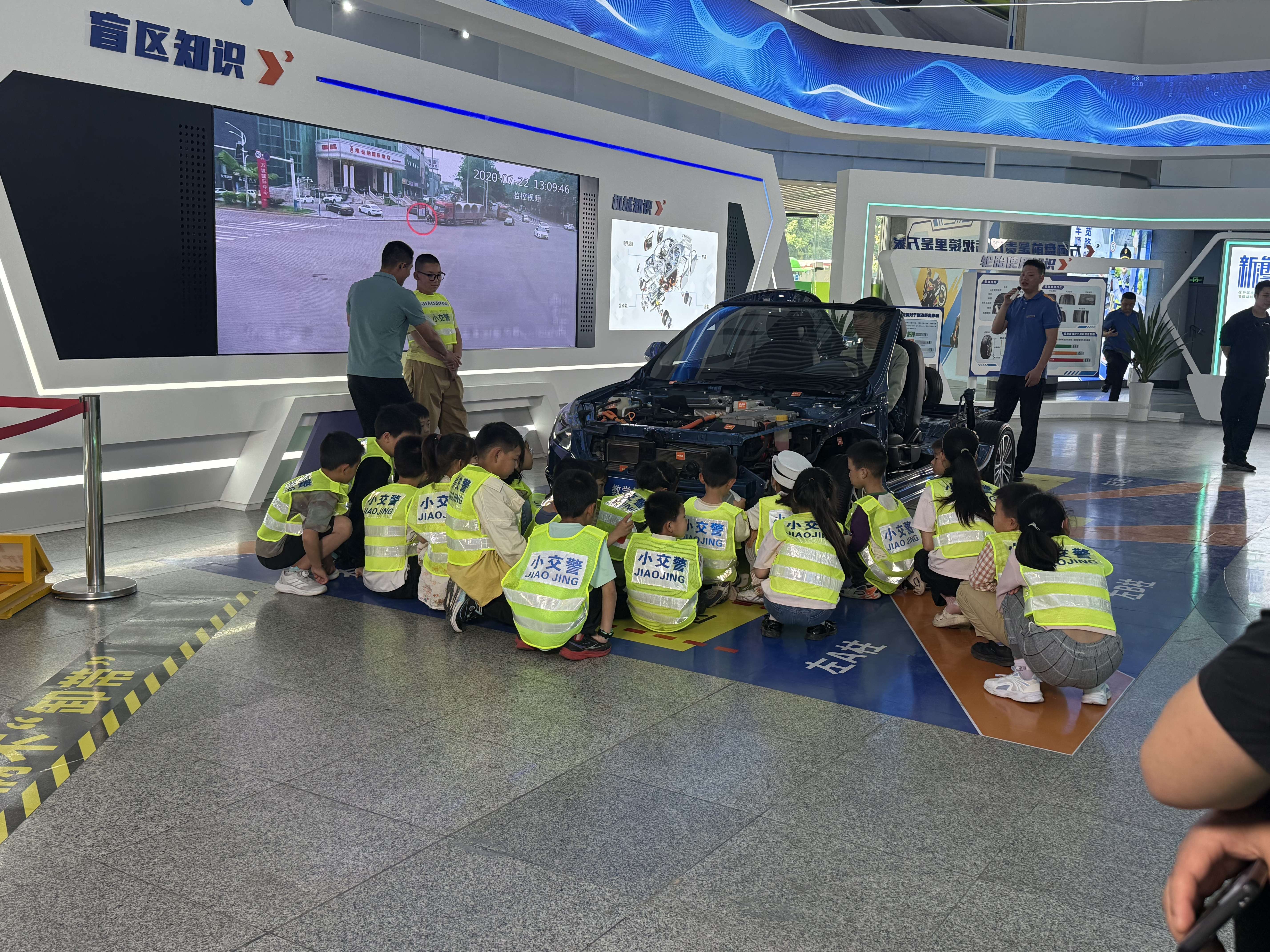 依托基地实训资源,沉浸式开展车辆盲区实景体验。通过环绕车身观察、上车实地查看,直观认清机动车各类视觉盲区范围,工作人员结合典型案例,通俗讲解“开门杀”、“鬼探头”等高频道路事故的诱发原因与防范要点,引导孩子远离车辆盲区、不随意横穿跑动,提醒家长规范停车开门、养成安全观察习惯,规避日常出行隐患。
