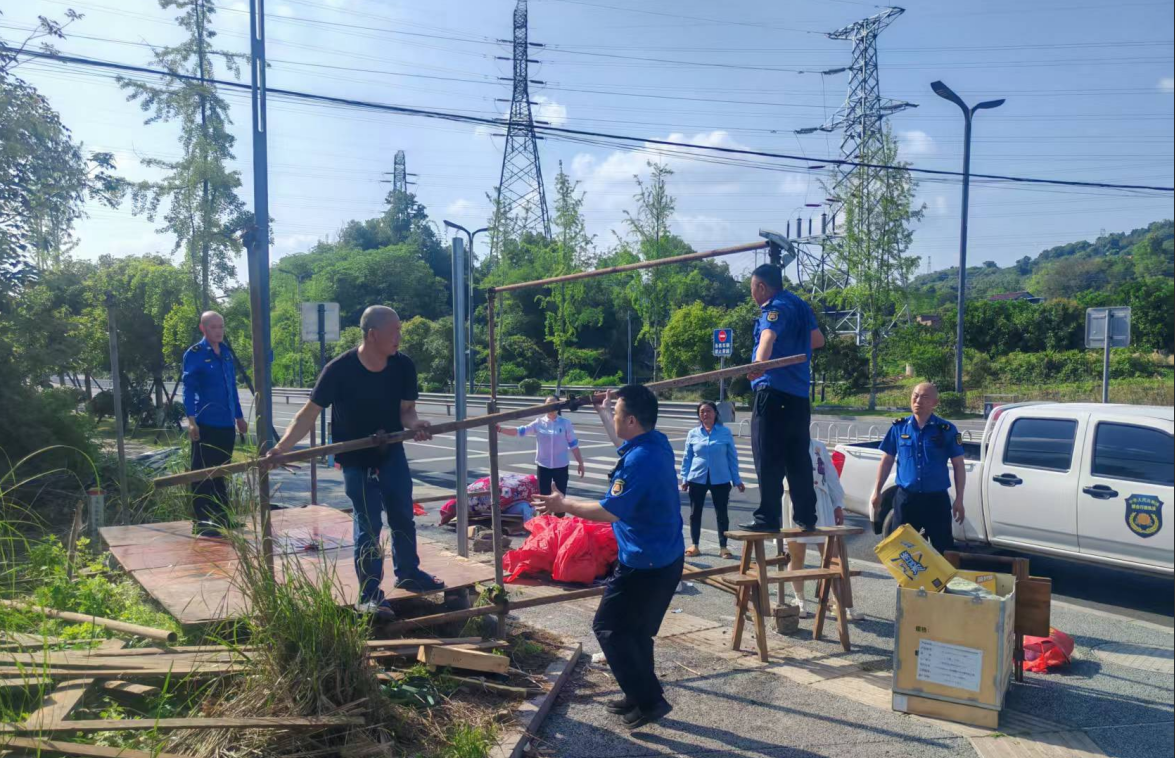 此前,该村一经营户因店铺位置较偏,擅自在村口交通转弯关键路段私自搭建棚舍,占道经营,且存在棚内休息的情况。该处属于道路视线盲区,违规搭建不仅挤占通行空间、遮挡行车视线,极易引发道路交通事故,同时占道经营、私自搭建行为均违反市容管理及道路安全相关规定。前期,桔卫村村委会已多次上门开展政策宣讲与劝导整改,但该经营户始终心存侥幸、未主动落实整改,安全隐患长期悬而未决。