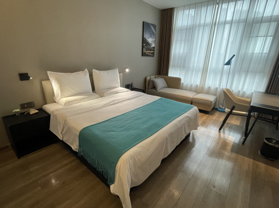 记者走访了市内的几家酒店,发现在五一假期期间,他们的订单量都趋于饱和。位于江阳区未来大道万城国际红星美凯龙旁的泸州天空之城酒店,房间简约、时尚、整洁,为了迎接客流高峰的到来,酒店已提前做好了准备。