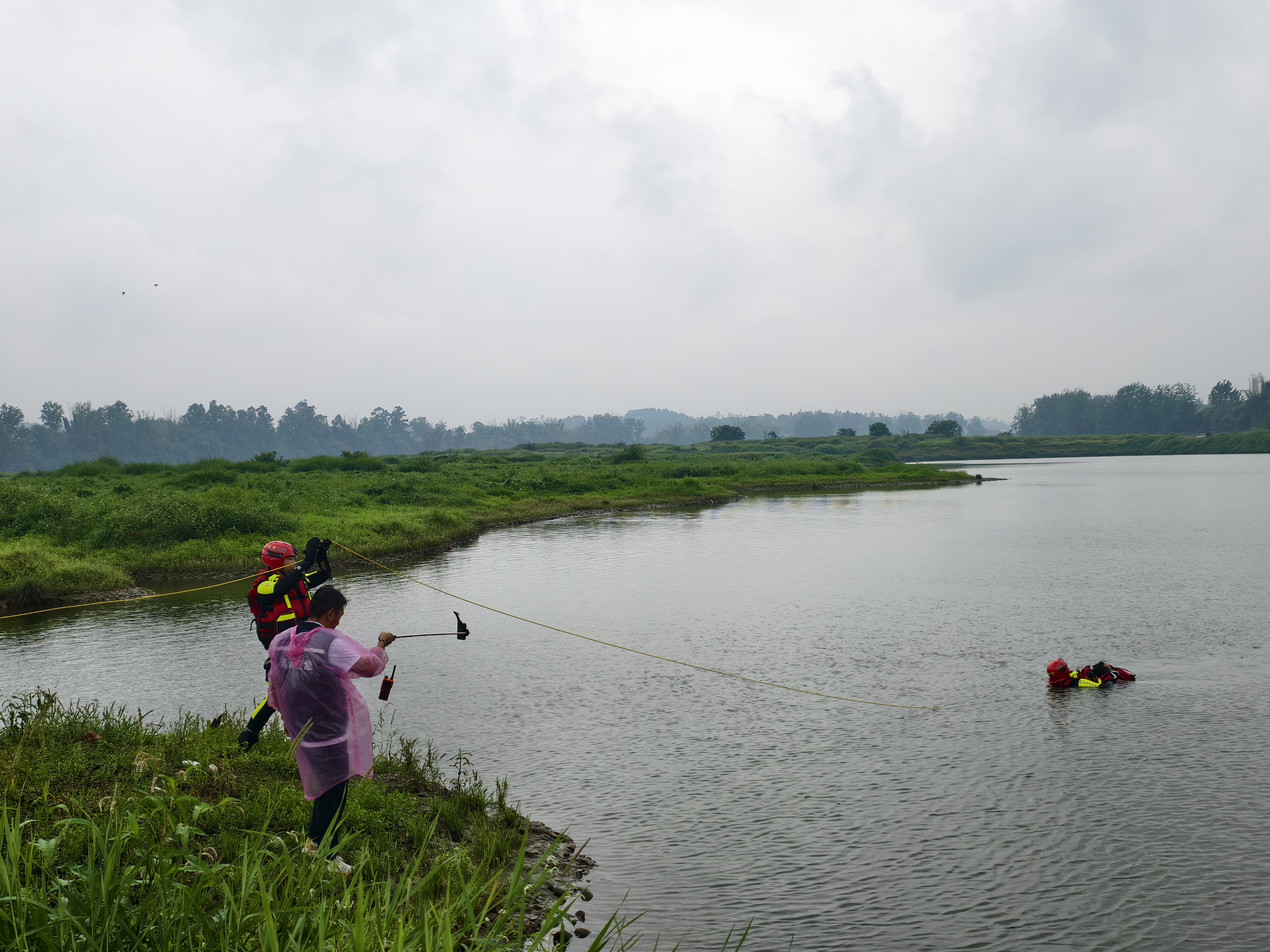 (模拟救援落水人员演练中,工作人员用执法记录仪实时传回现场画面)