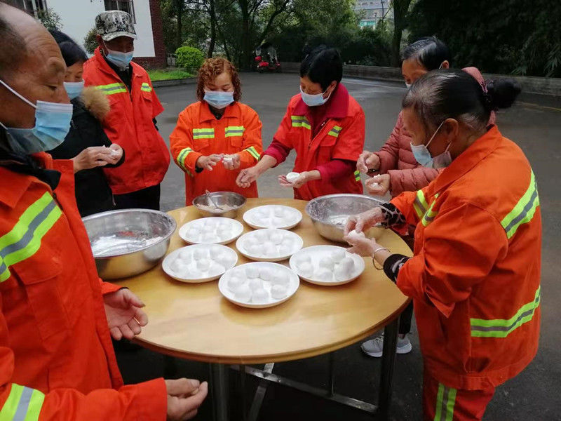一大早,村(社区)工作人员就将准备好的糯米粉、豆沙、黑芝麻等材料搬到活动现场。邀请环卫工人、居民参与闹元宵活动。活动中,大家一起撸起袖子开始揉面、放馅料,搓汤圆、煮汤圆,不一会儿,一个个白白圆圆的汤圆就出现在大家眼前。“元宵节就是应该吃汤圆,我们自己亲手做汤圆,既热闹又暖心。”大家你一句、我一句欢声笑语谈笑着热闹非凡。