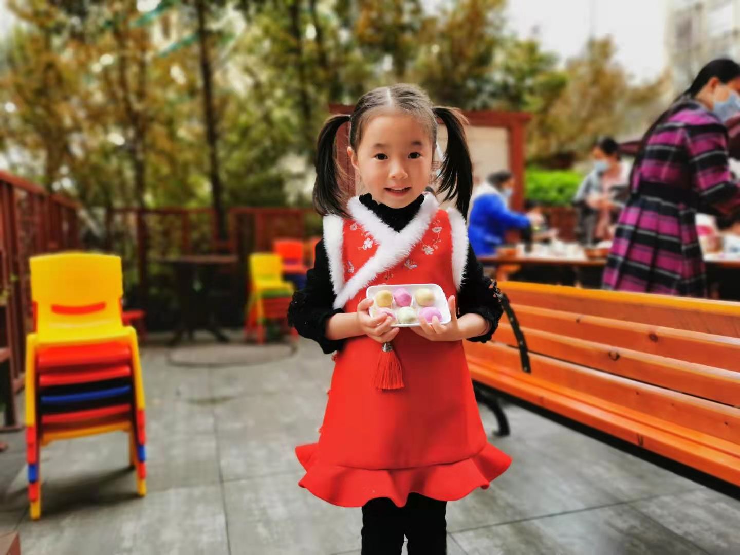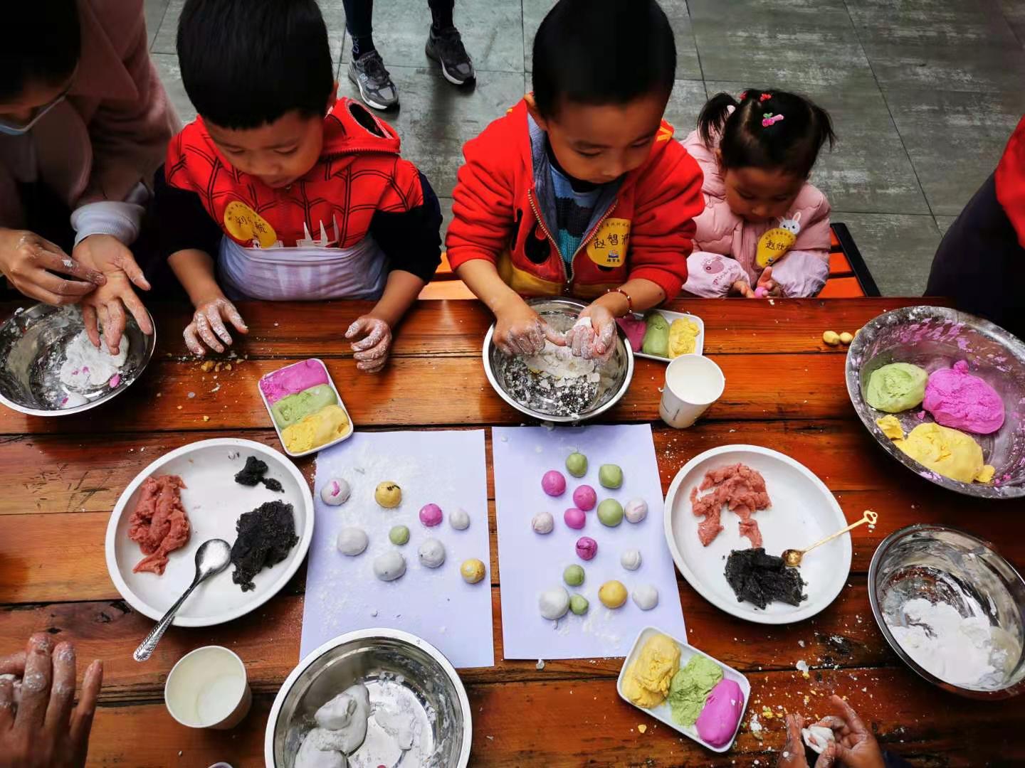 孩子们以前只吃过白色的汤圆,没想到汤圆还能通过添加蔬菜和水果汁做成彩色的汤圆,孩子们都特别好奇。孩子们不仅可以现场煮汤圆分享劳动成果,还能汤圆带回家和家人分享,共庆元宵佳节。